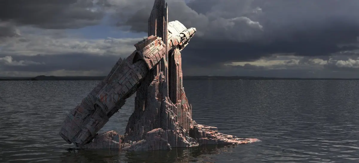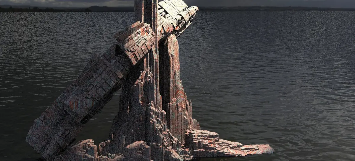 Alien Ship on mountain Desert Tiled textures too 3D !
