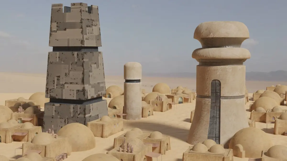 Collection of three towers known form the planet tatooine from the Star Wars Universe