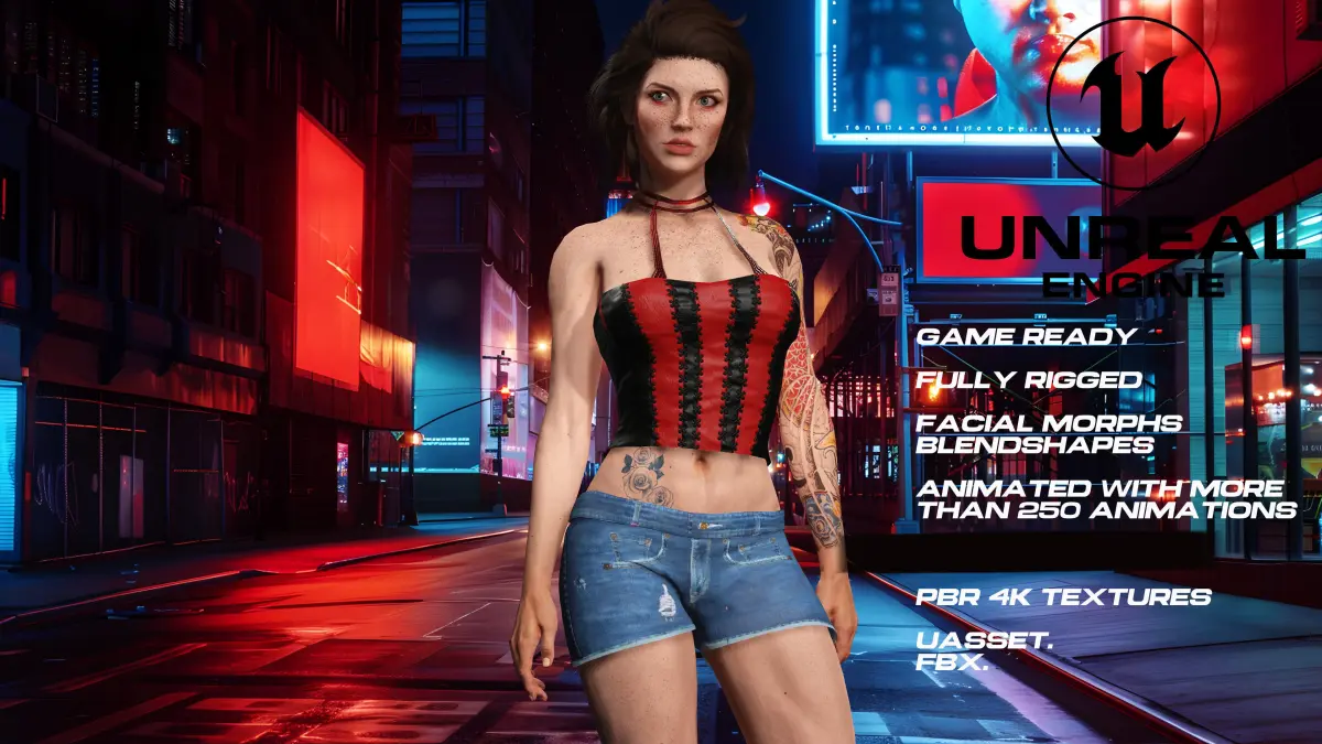 tatto Girl. Fully rigged with more than 150 facial morphs, (blendshapes) so you can modify them to your liking. ( Watch the video to see the morphs and animations)