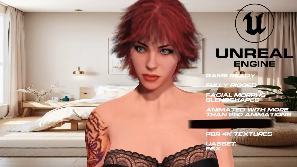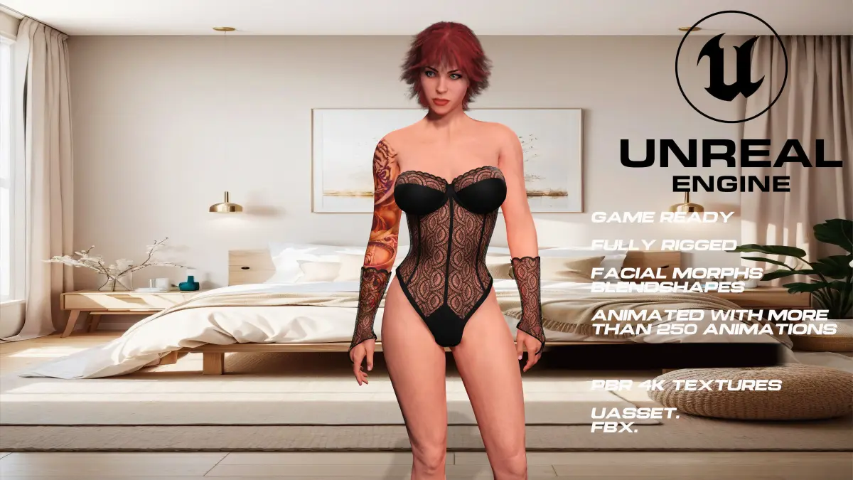 Home Catalog Tattoo girl full rigged - game ready - animated Low-poly 3D model