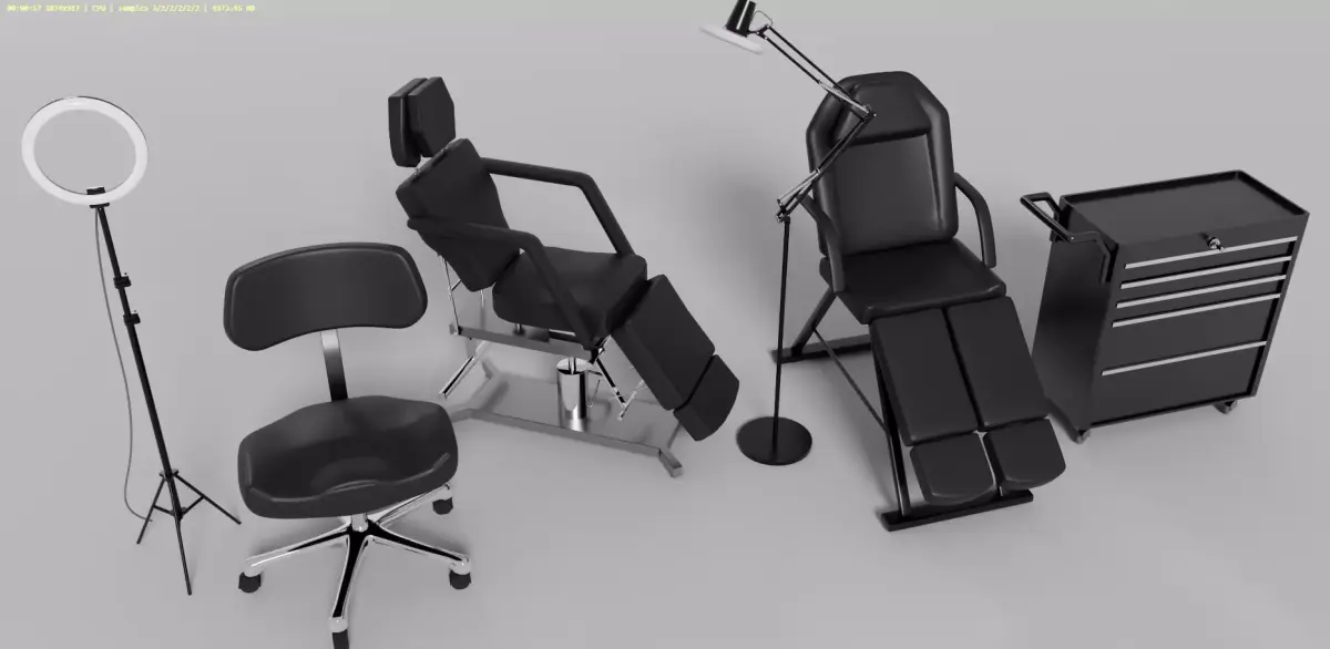 Tattoo Light Lamp Drawer Chairs all items 3D model Maya Arnold assets