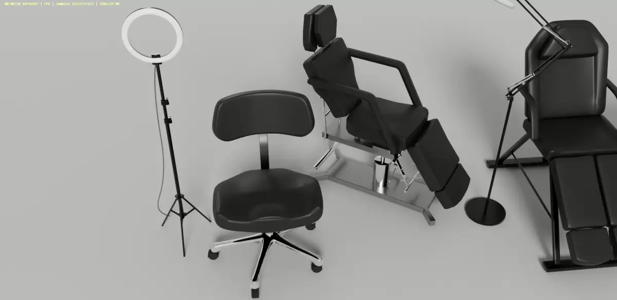 Tattoo Light Lamp Drawer Chairs all in one Low-poly 3D model