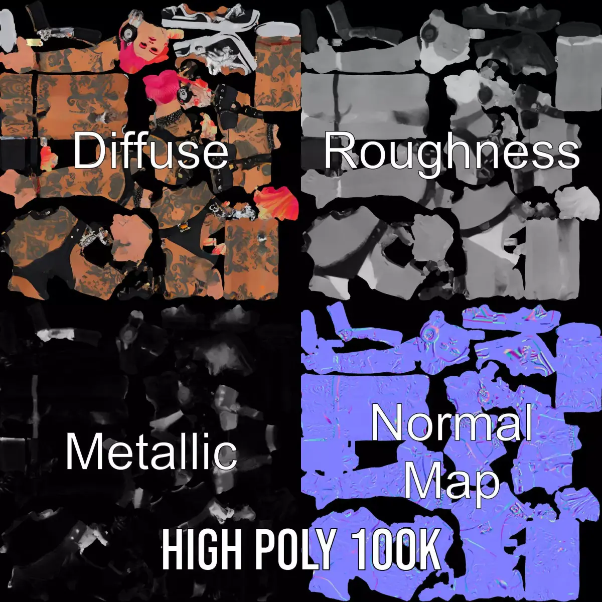 The model's textures are PBR, with Diffuse, NormalMap, and reflection/roughness/metallic, which are suitable for any modern rendering engine. All models are accurately unwrapped and have no overlapping UV.