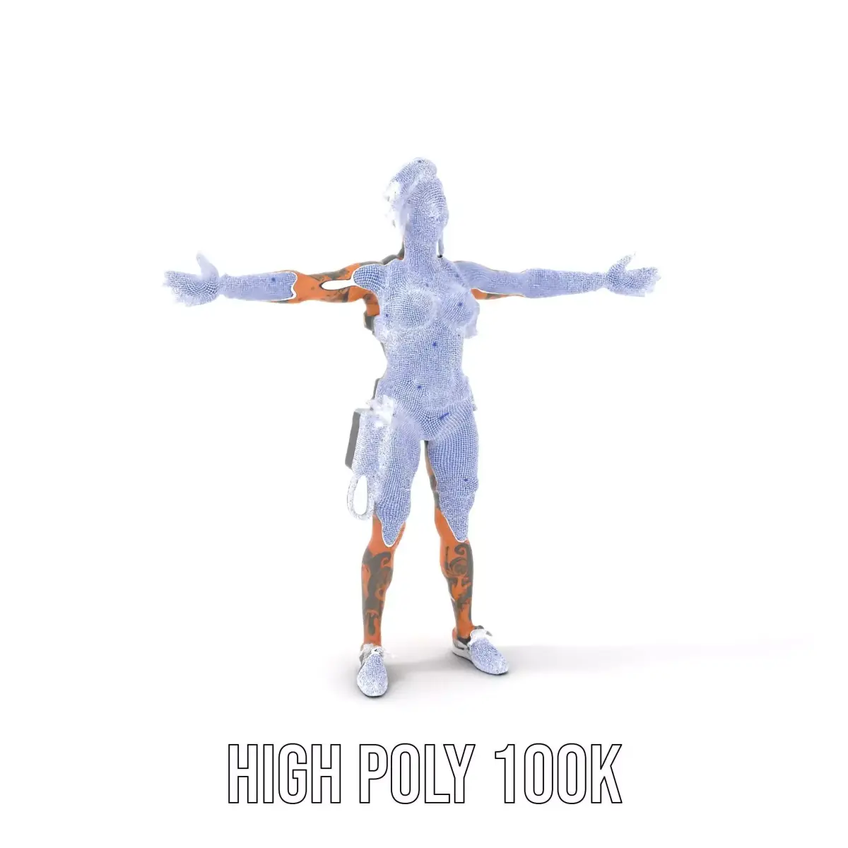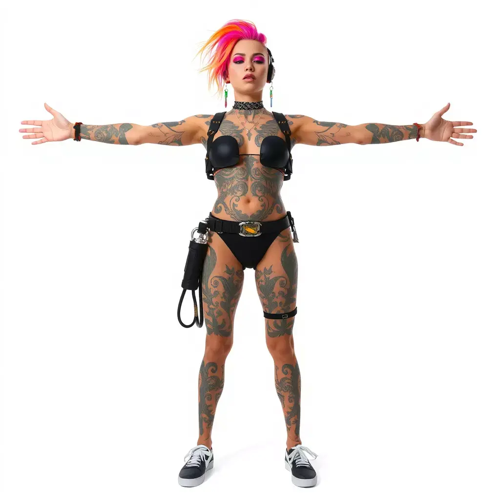 This model features a striking cyberpunk character with vibrant tattoos and colorful hair, embodying a unique futuristic style.