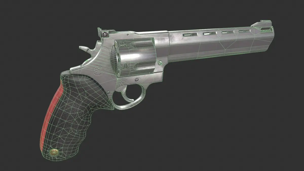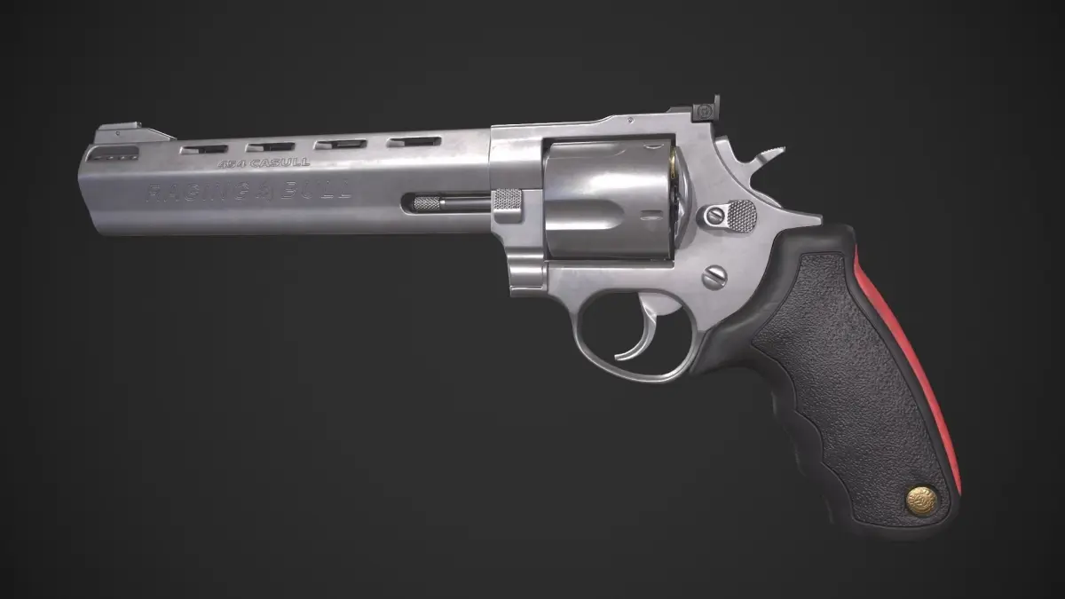 Game-ready Taurus 454 Raging Bull asset with the bullet - the PBR textures are included in the files. This has 6243 polys (11469 tris) and 5778 vertices. Normal mesh settings in the Maya native file are set, editing them further might ruin the normal maps included.