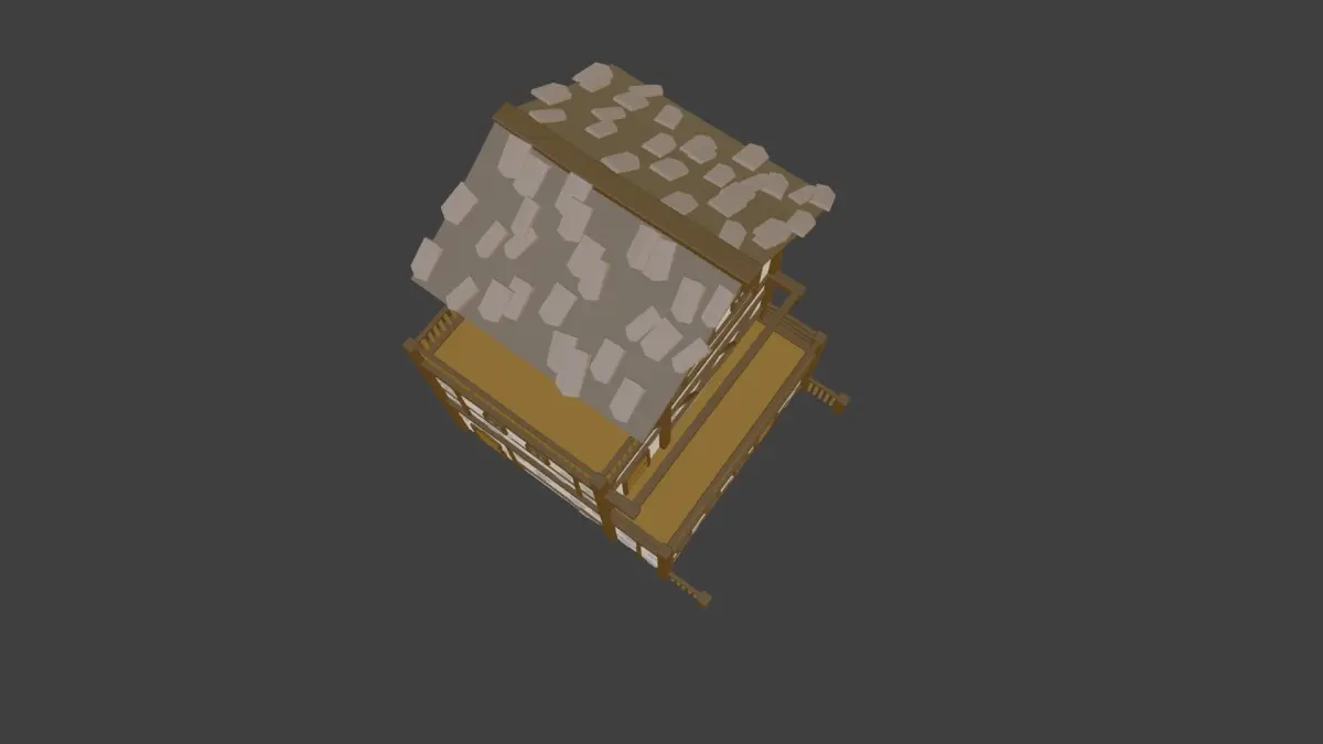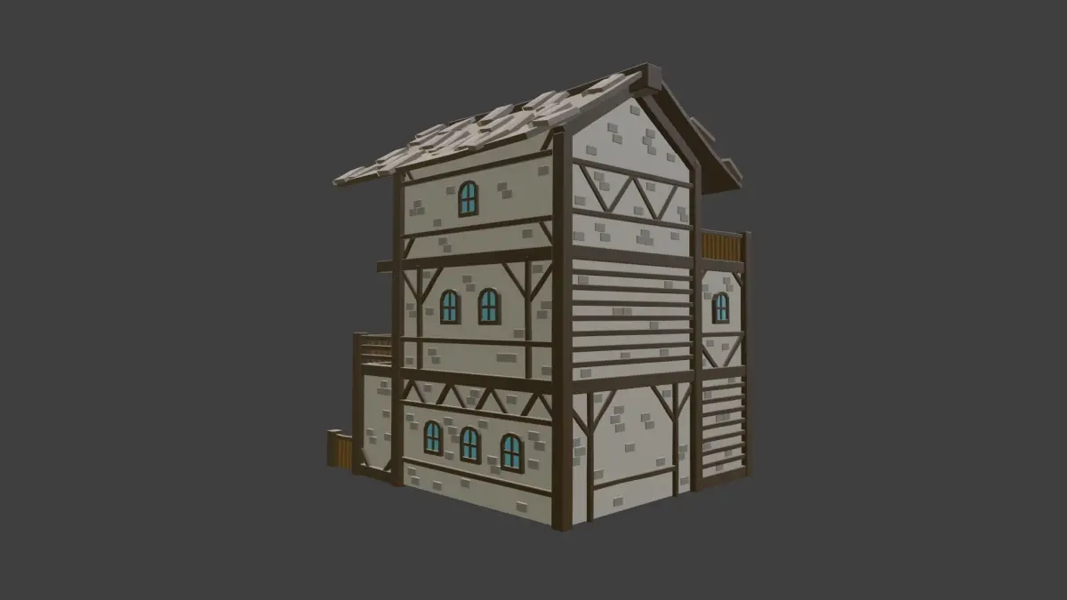 Low-Poly tavern made in Blender, with beige roof with basic materials applied. The zip file attached includes a rendered, solid, and wired rendered view, as well as an OBJ and FBX files. Here are the following materials, but feel free to change the materials in-game if necessary: