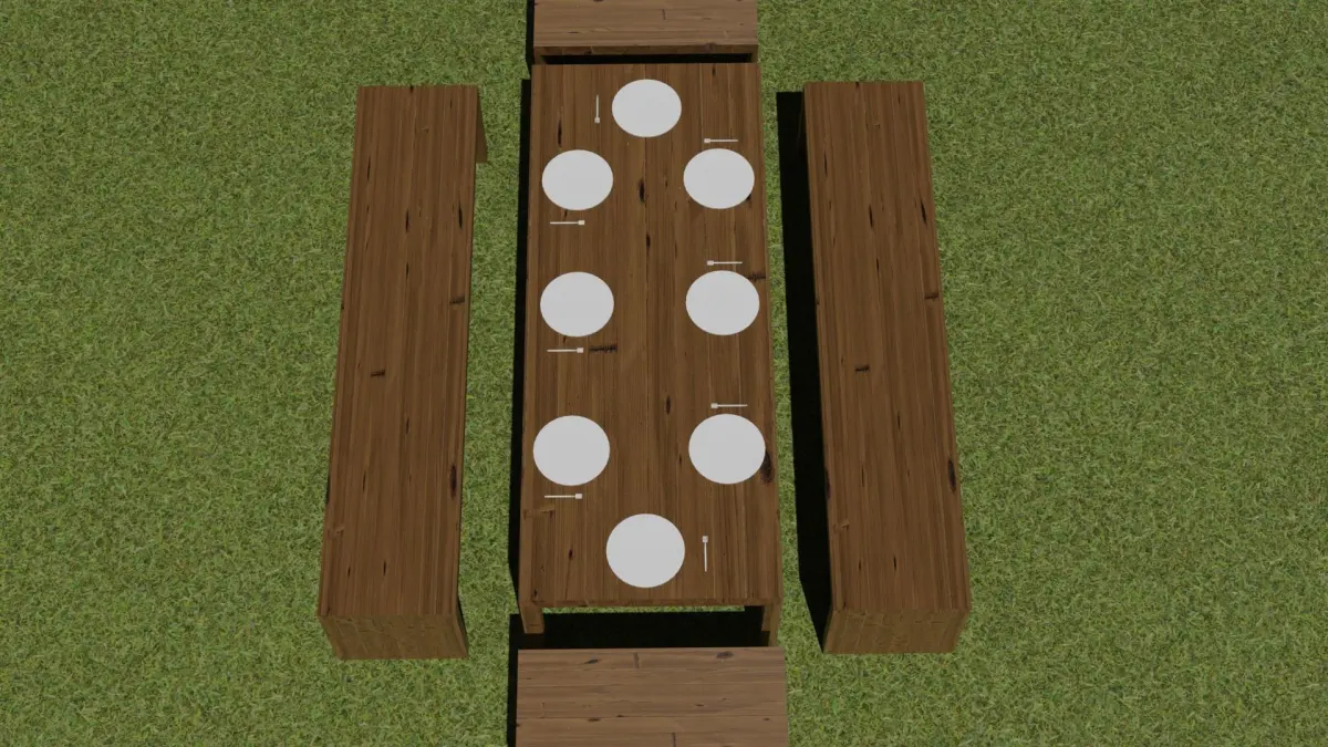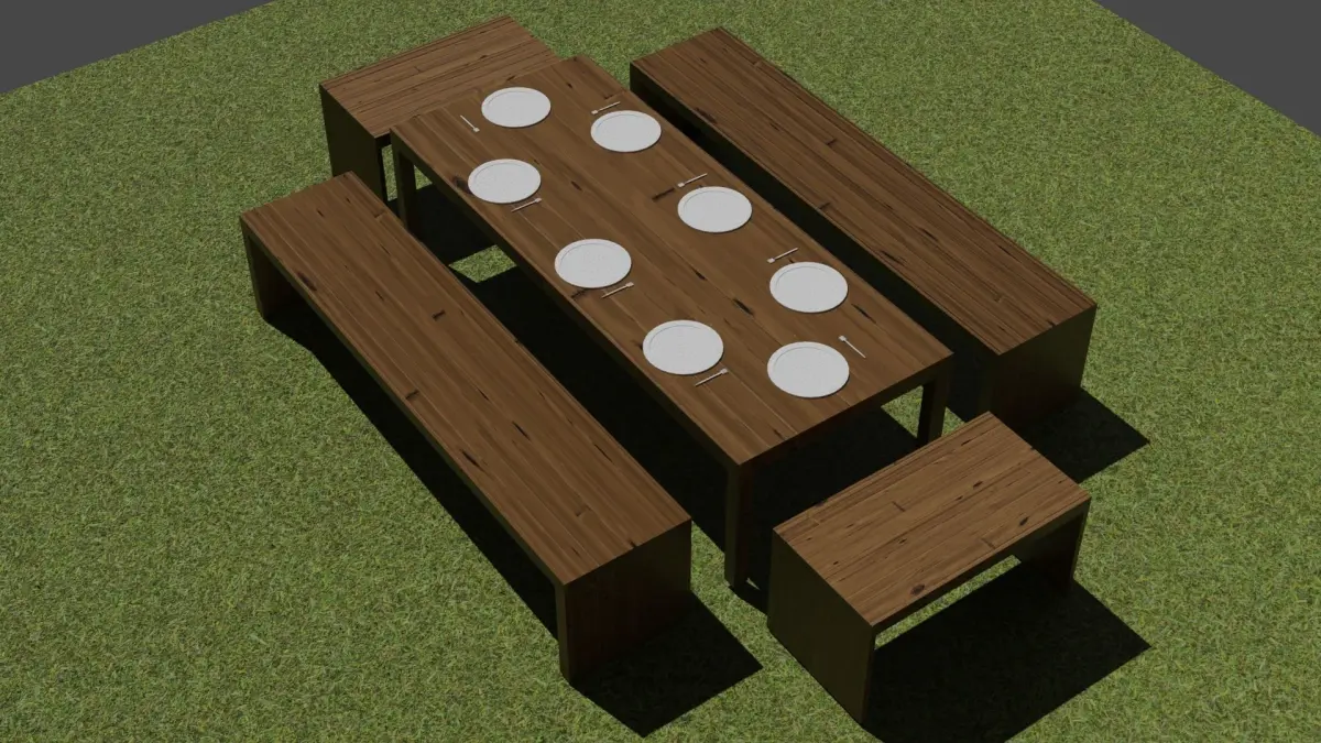 tavola di legno parco con piatti e forchette wooden table park with plates and forks