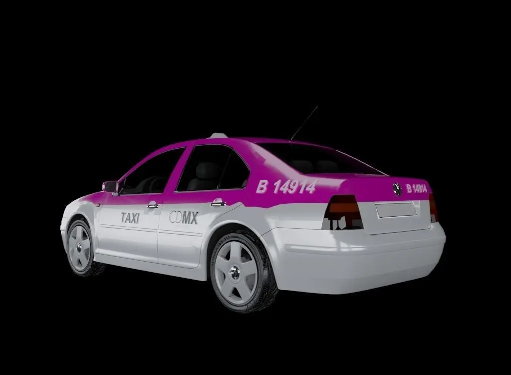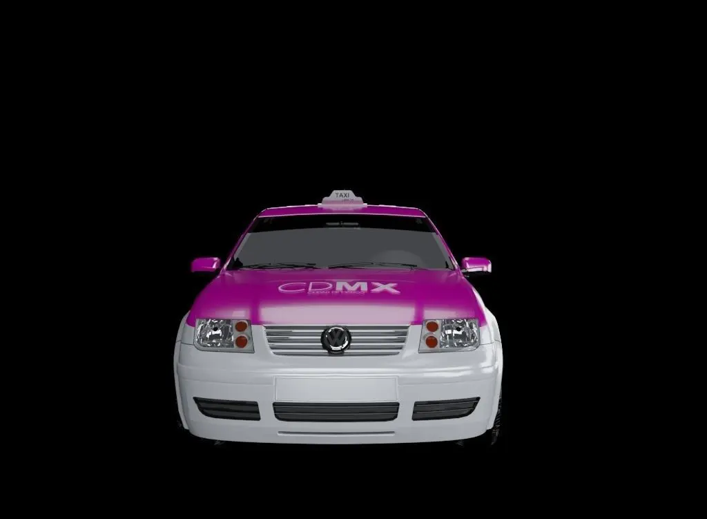 3d model of a taxi in Mexico City. VW Bora vehicle. Chromatic and authorized labels (2015) by SEMOVI.Pink Pantone 226C