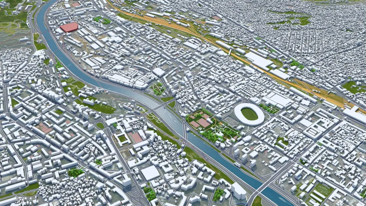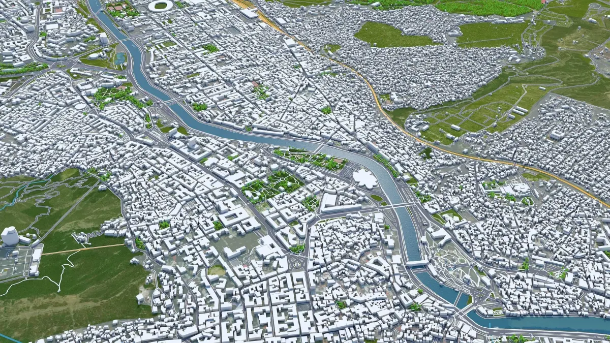 Accurate 3D city model and its surrounding area based on GIS data Year 2022
