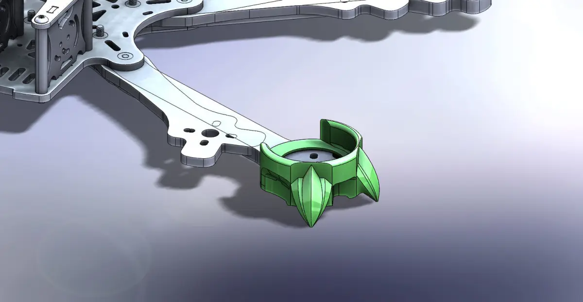 Motor protection and arm ends: protects the propeller from impact up to 40 ° of inclination and moves the impact away from the carbon. super low weight of just 6 grams each. Tpu printing: 209 / 50mm / s / 100% infill.