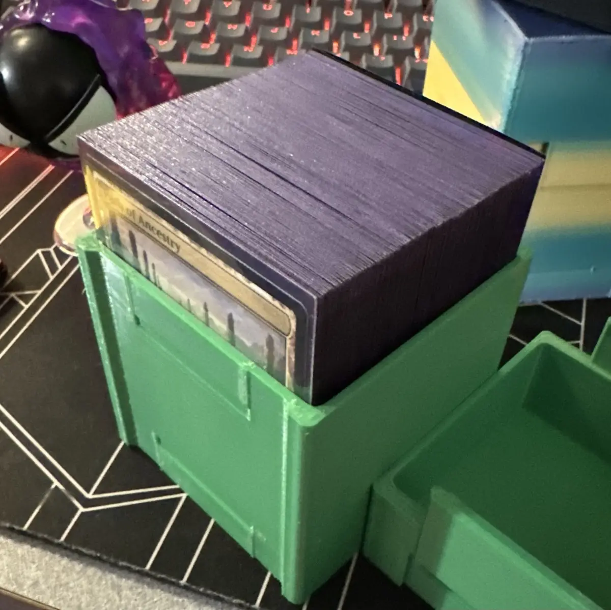 Having been a long time card game player I can never have enough deck storage. I also like being able to put all of the dice and counters I want with my deck for easy on the go organization.