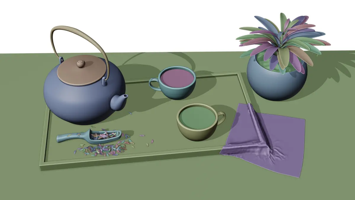 Model made in Blender, 4.2 versionrepresents kitchen objects: cups and coffee during free timeRedering with Cycles engine in Blender.