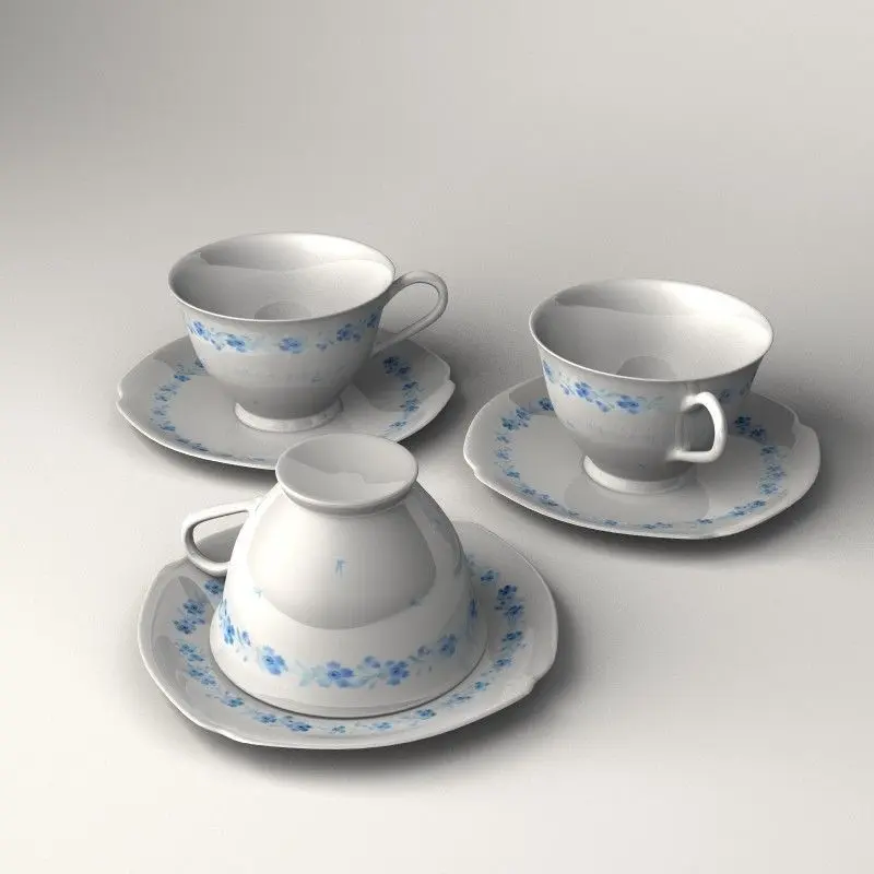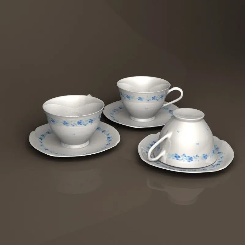Tea cup set with plate. This model was originally created with Lightwave using subdivisional modeling. All quads, can be further subdivided. Textures are in .JPG format.