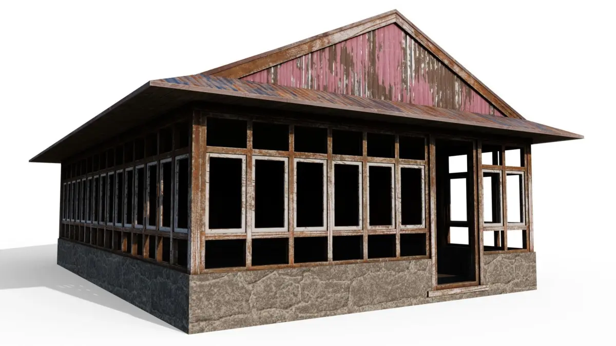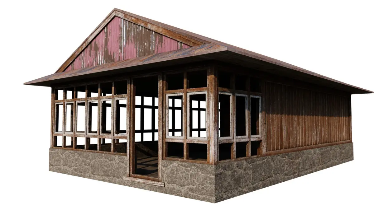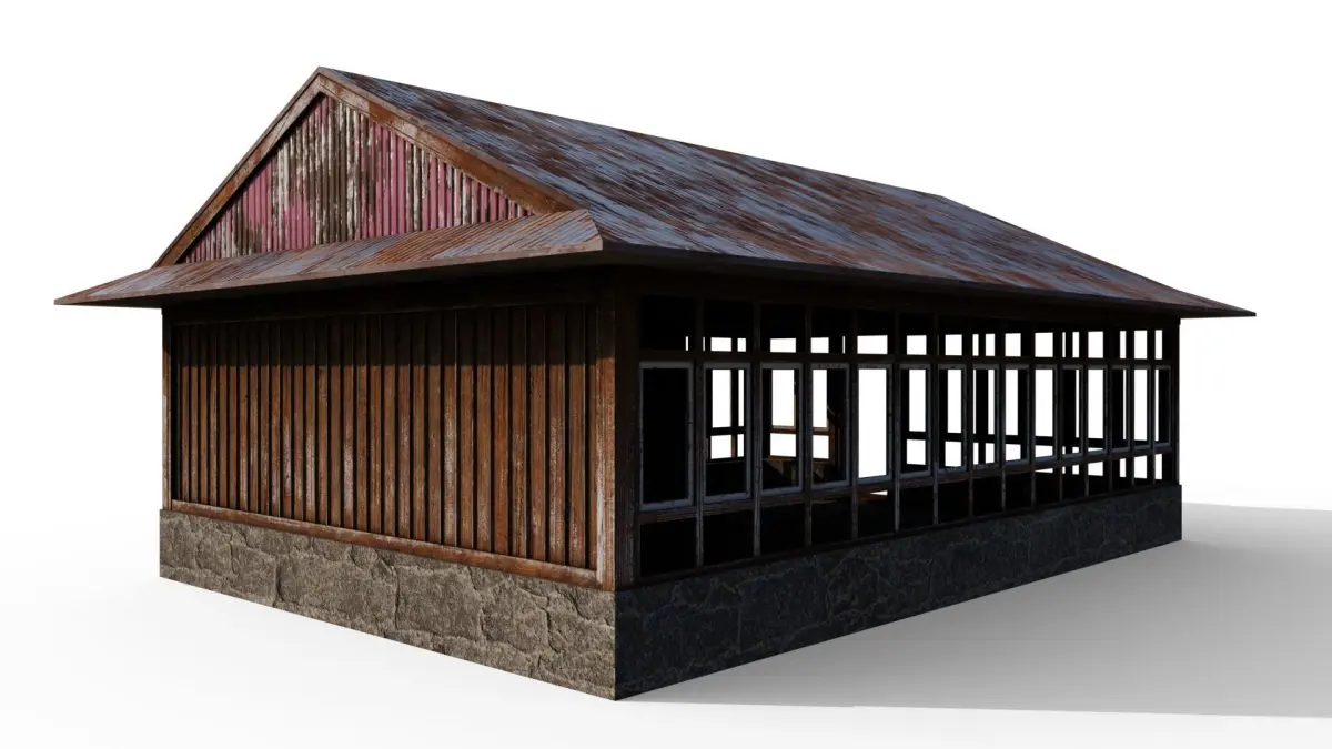 An large open wooden shack with an enterable interior. Consists of three PBR materials with non-overlapping UVs . Works great in any modern game engine or for rendering purposes.