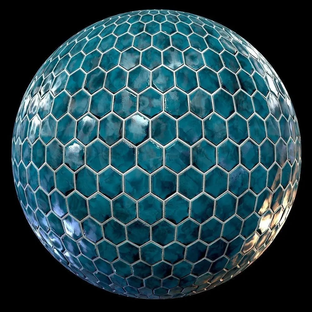 This PBR seamless material created by Substance Designer. Teal tiles use for bathroom and kitchen tiles.