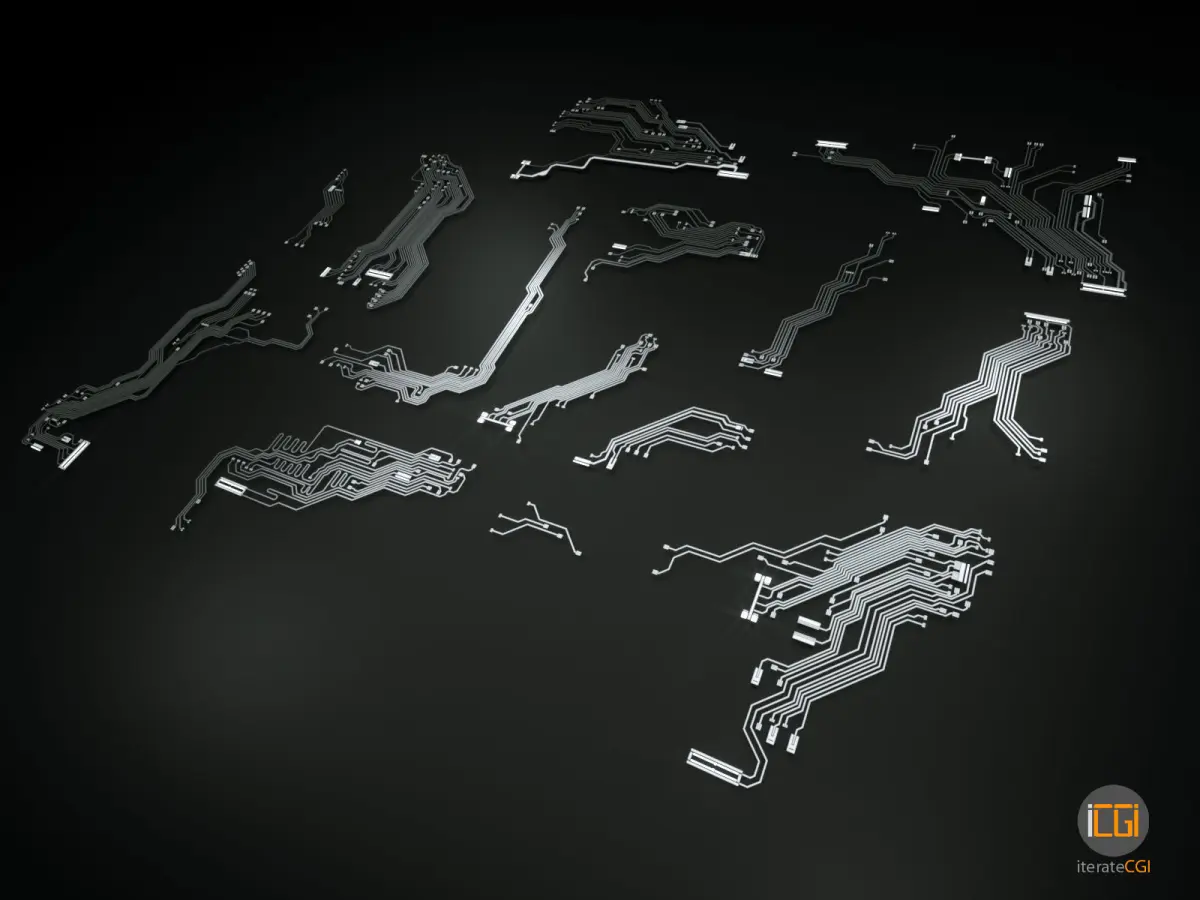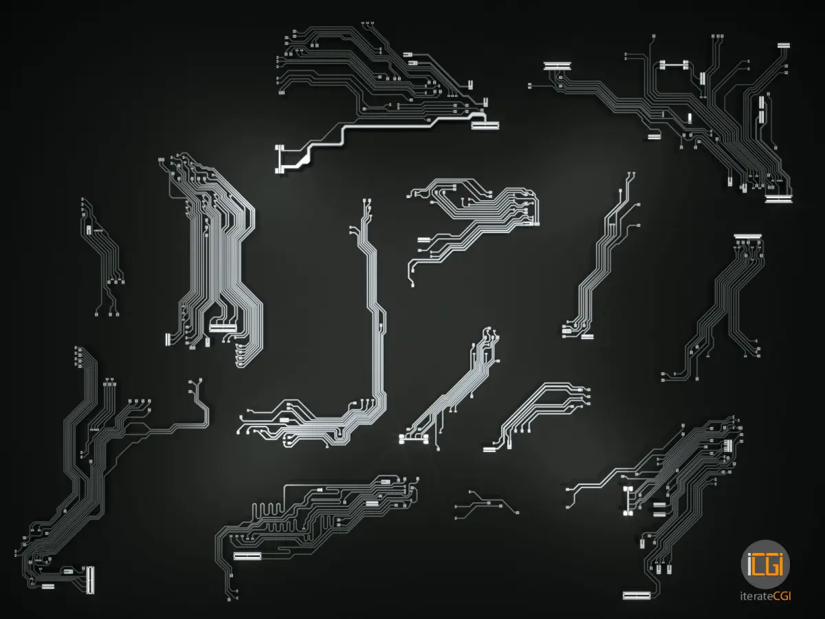 - One 3ds max file version 2016 holding 14 unique 3D circuit shapes and basic multi-sub shader (no render settings)
