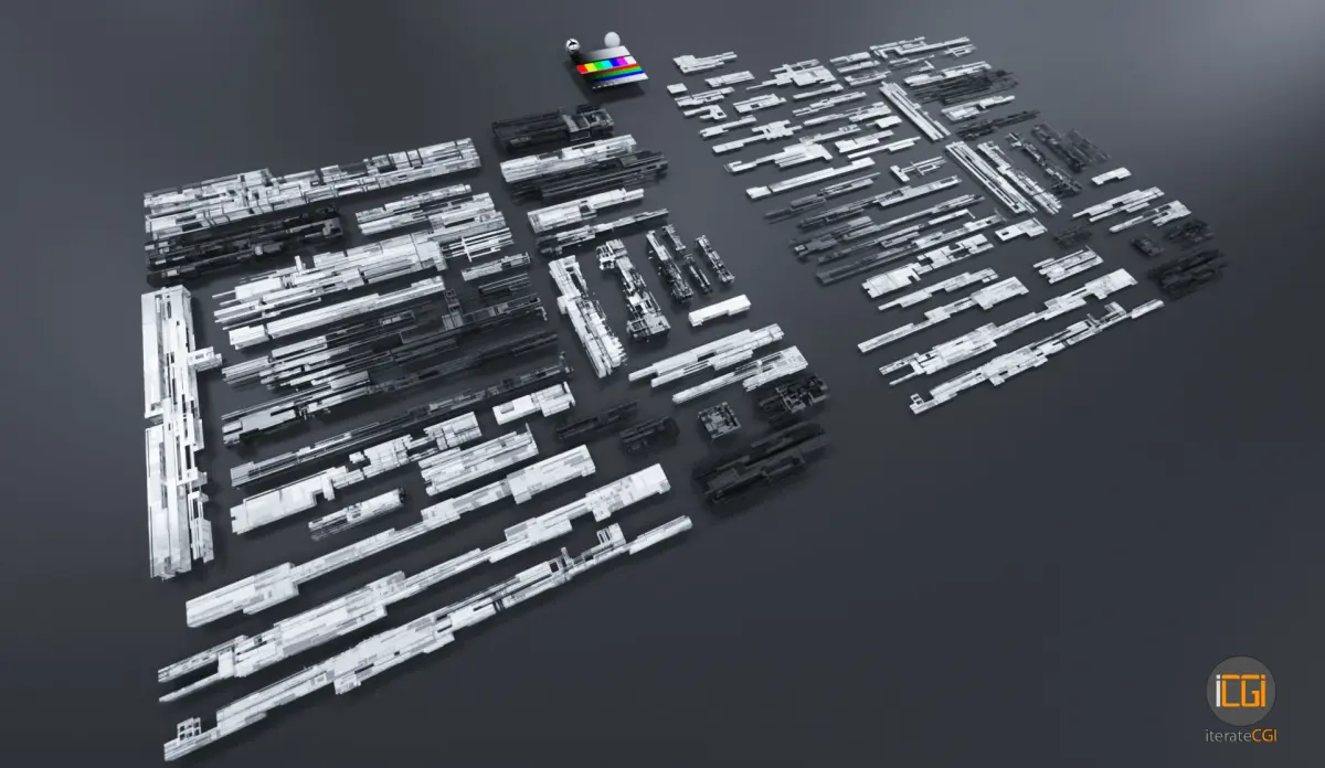 Set of 117 stylized greebles 3D shapes, useful for motion graphics design, kitbashing and concept designing for sci-fi environments. The shapes are deliberately kept very low poly in order to be able to copy them 1000ends of times, combine clusters of differently scaled shapes to create intricately detailed scenes fast.