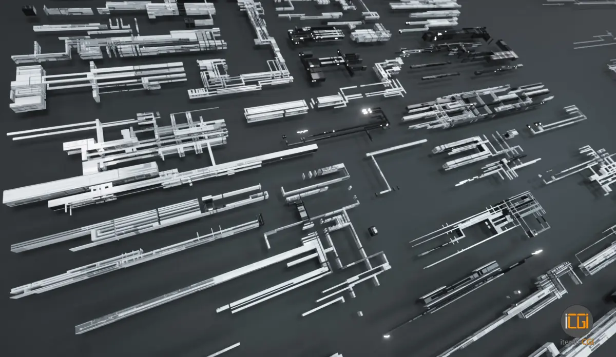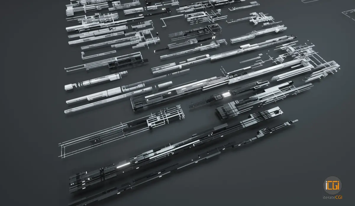 Set of 126 stylized greebles 3D shapes, useful for motion graphics design, kitbashing and concept designing for sci-fi environments. The shapes are deliberately kept very low poly in order to be able to copy them 1000ends of times, combine clusters of differently scaled shapes to create intricately detailed scenes fast.