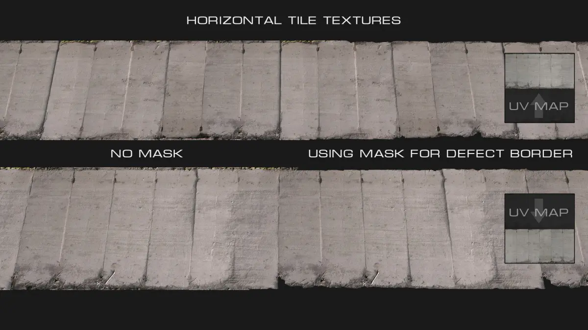 4K jpg, 8K jpg, 16K png textures repeated in length: