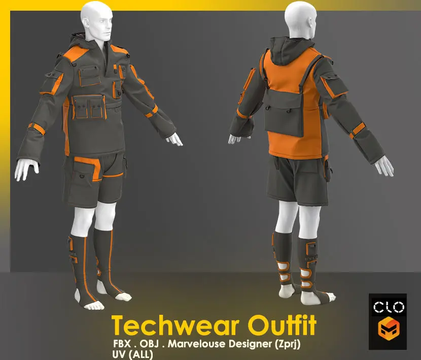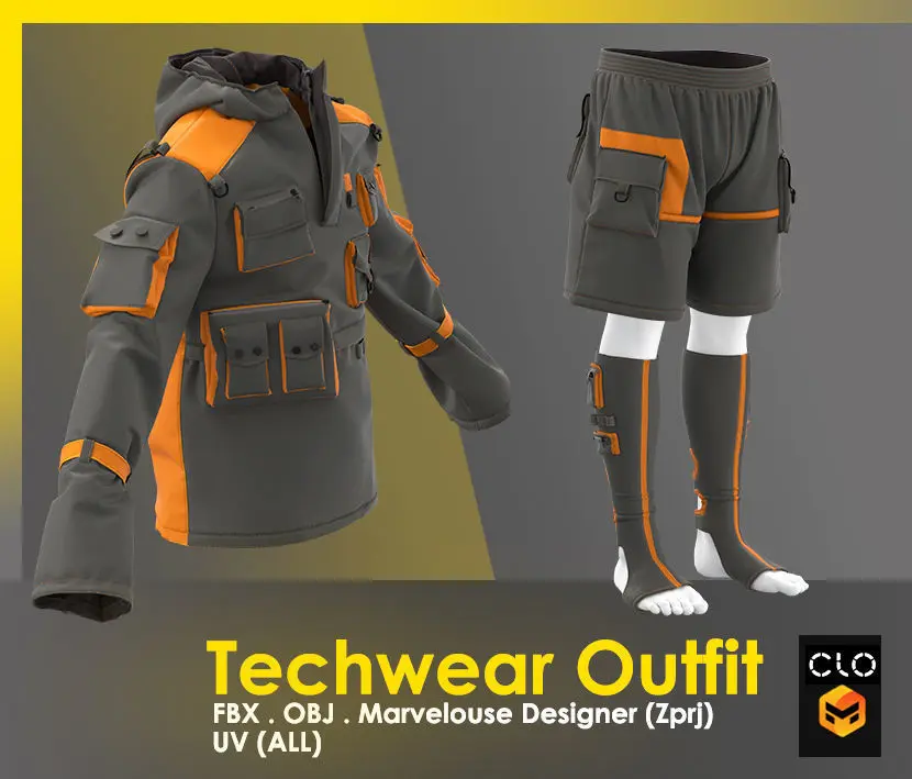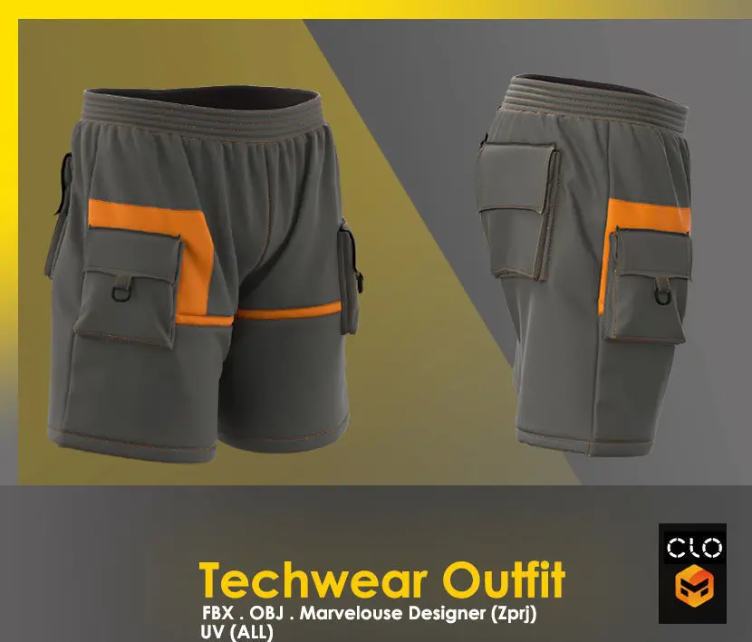This high poly product includes 3 pieces which all are available in one zprj file including a future fashion jacket a techwear short and footwear . For preparing this product I've used Marvelouse designer.