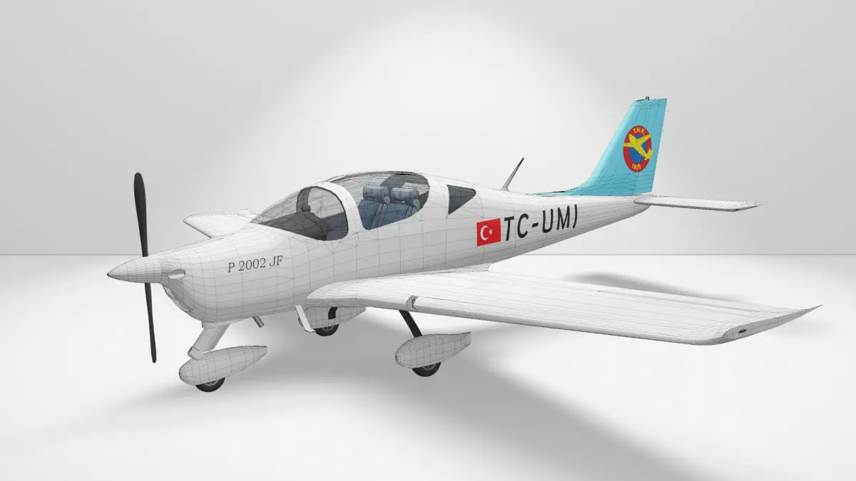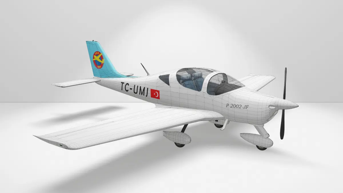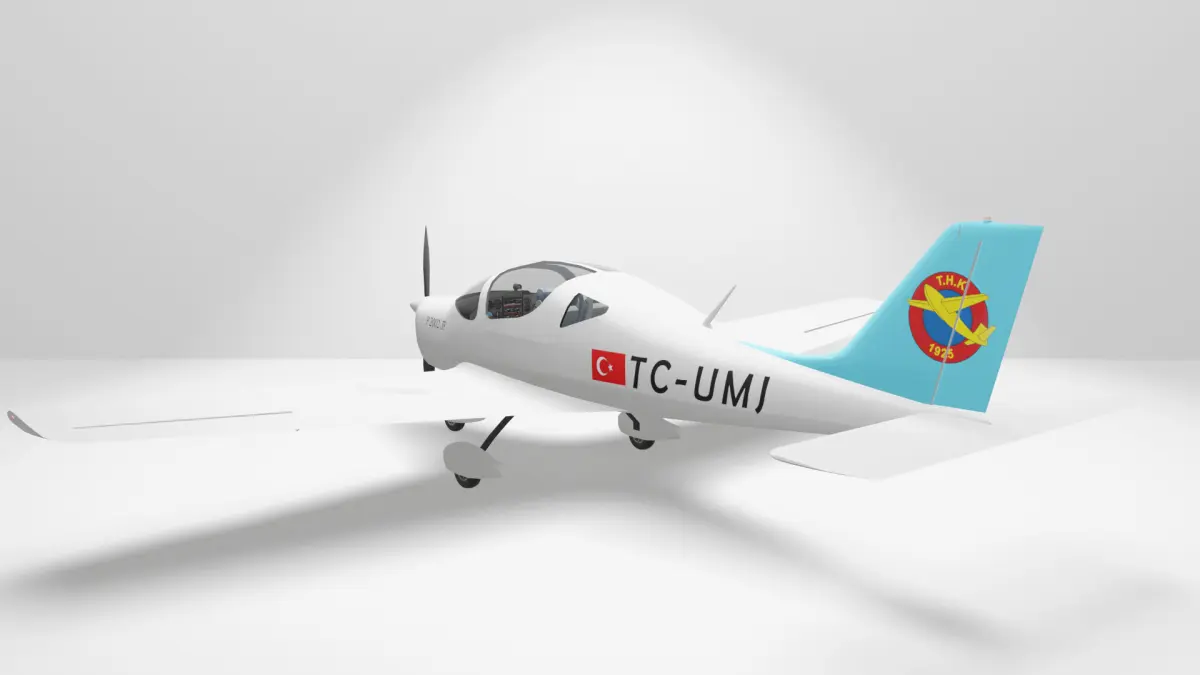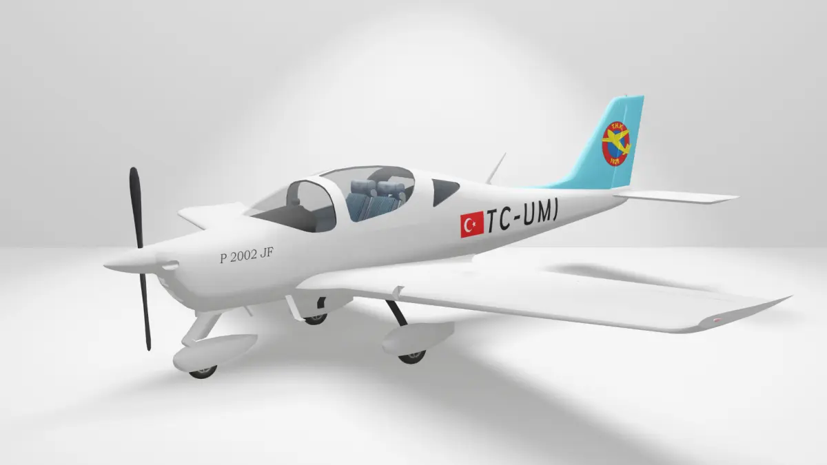 Türk Hava Kurumu bünyesinde bulunan Tecnam P2002 JF model uçağa ait 3D Model ve güncel Kaplama Çalışması.