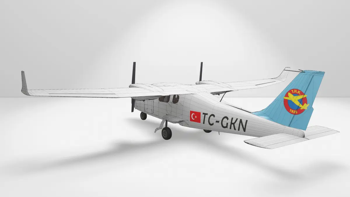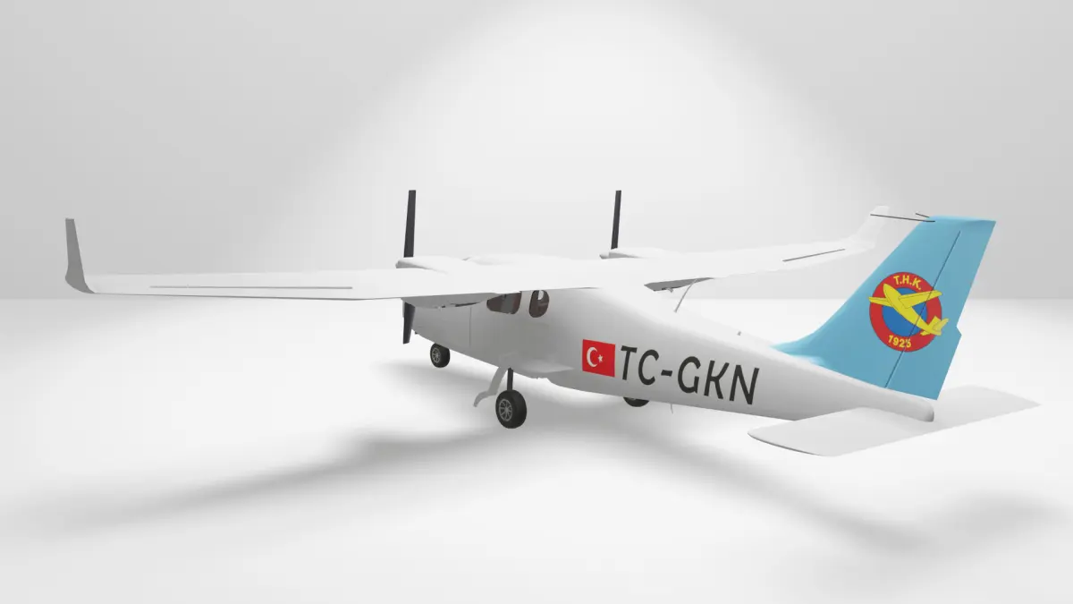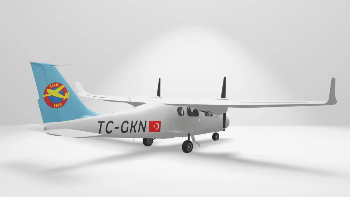 Türk Hava Kurumu bünyesinde bulunan Tecnam P2006T model uçağa ait 3D Model ve güncel Kaplama Çalışması.