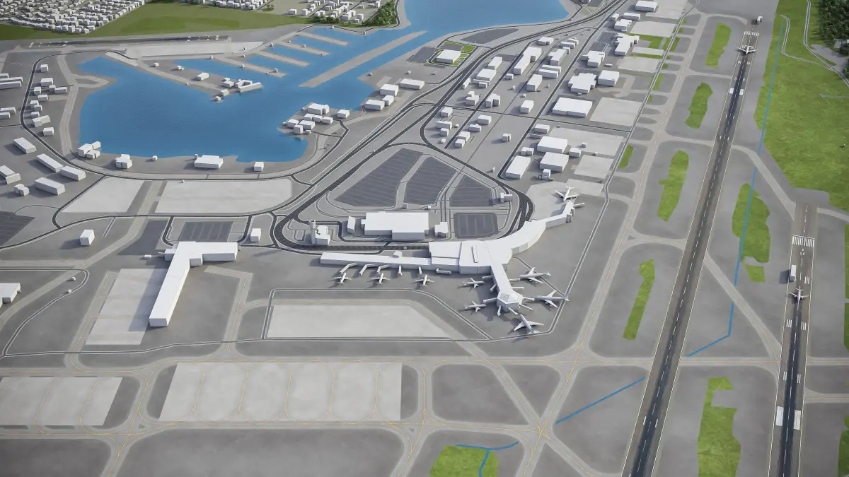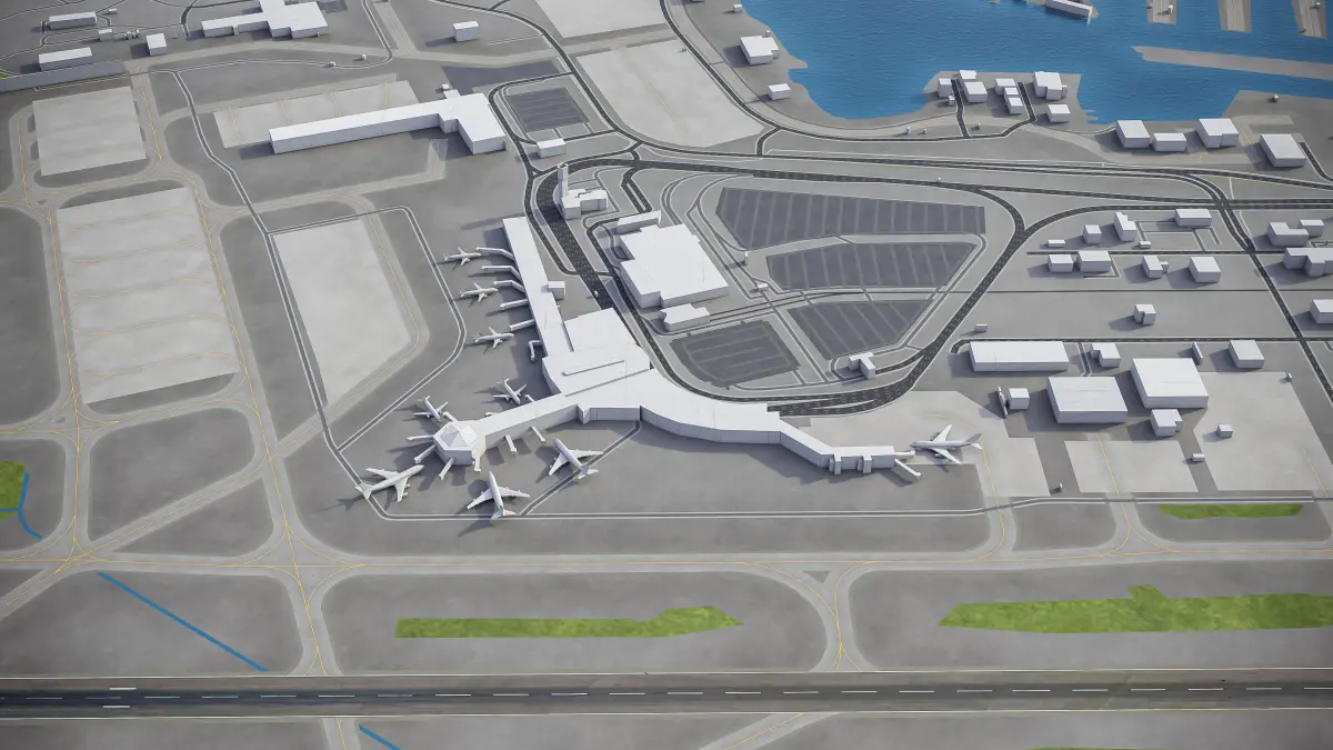 This is exact and accurate to-scale 3D model of Ted Stevens Anchorage Airport (ANC) and its surrounding area based on GIS data (September 2021)