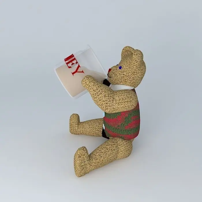 This 3D model was originally created with Sketchup 7 and then converted to all other 3D formats. Native format is .skp 3dsmax scene is 3ds Max 2016 version, rendered with Vray 3.00 Teddy Bear with a large jar of honey. A teddy bear with a big appetite