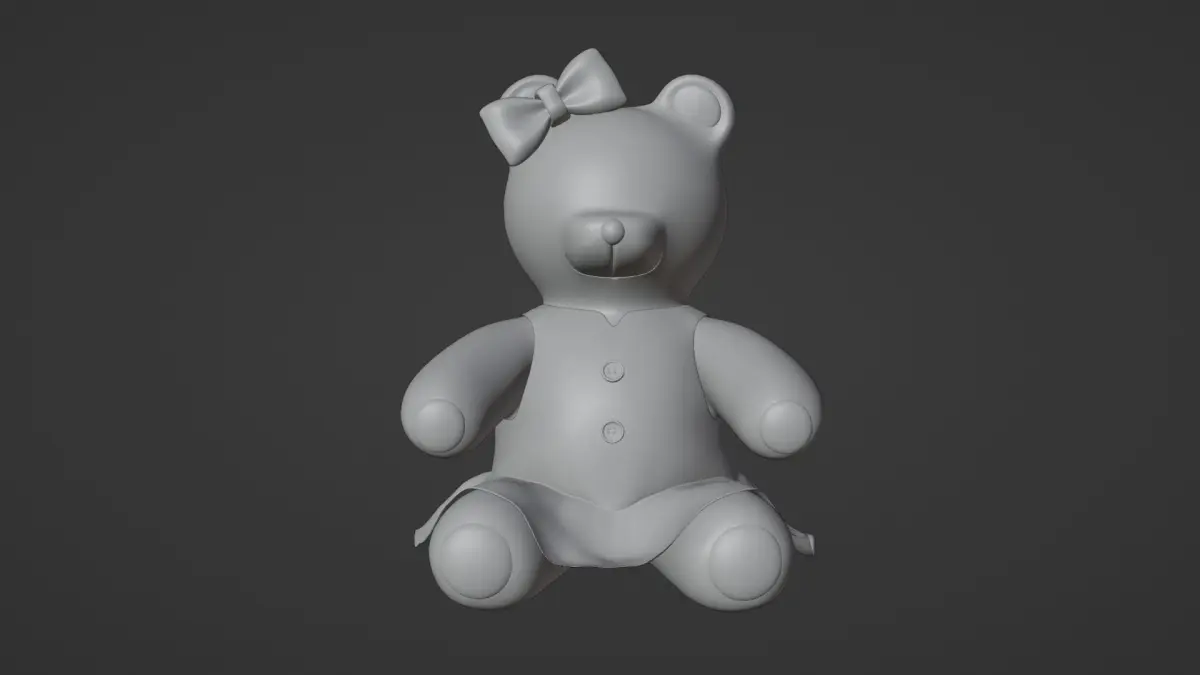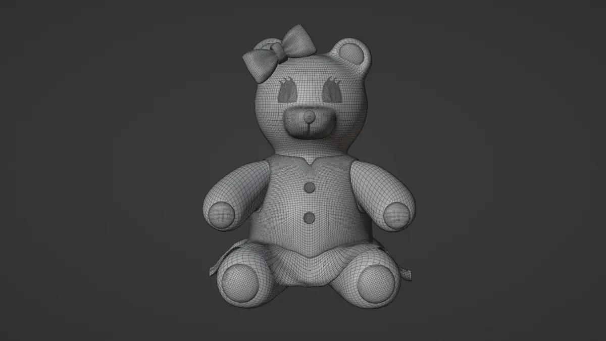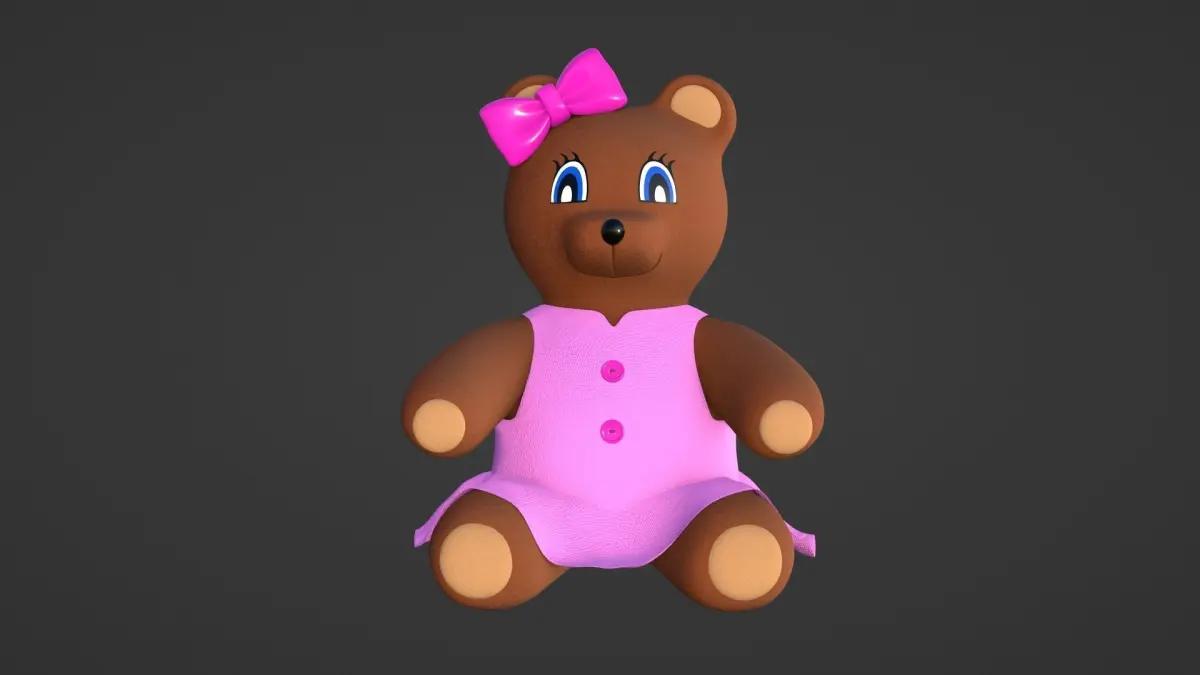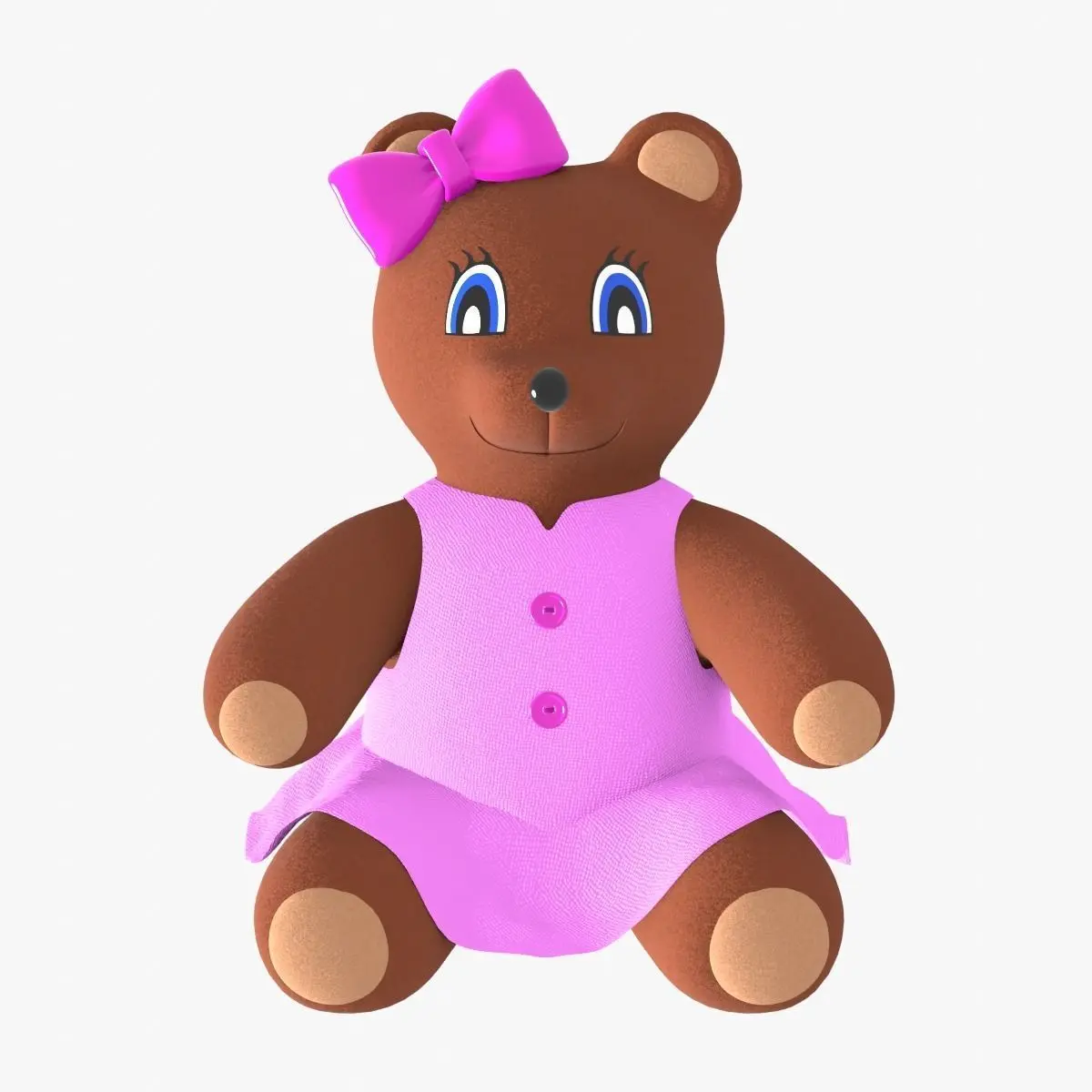 Teddy Bear Girl Toy Brown Stuffed 3D Model.