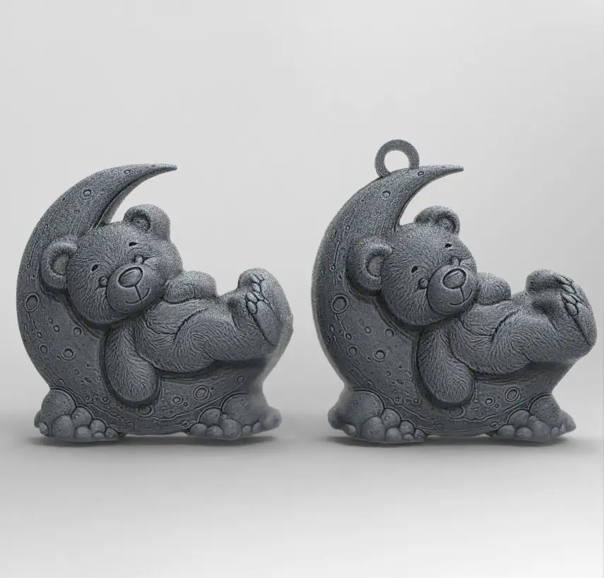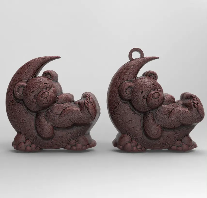teddy sleep on moon keychain decor 3D print model
