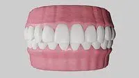 A basic set of teeth with gums and a tongue. The teeth have no roots and the roof and floor of the mouth are not modeled. Use this for medium-detail stuff.
