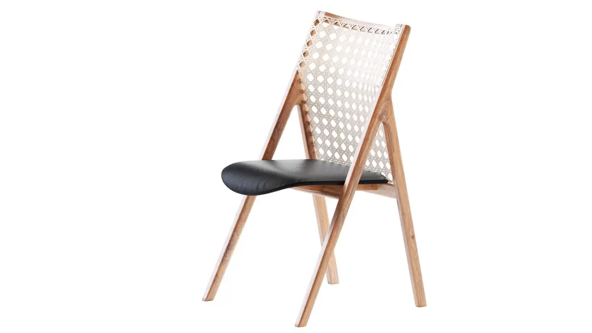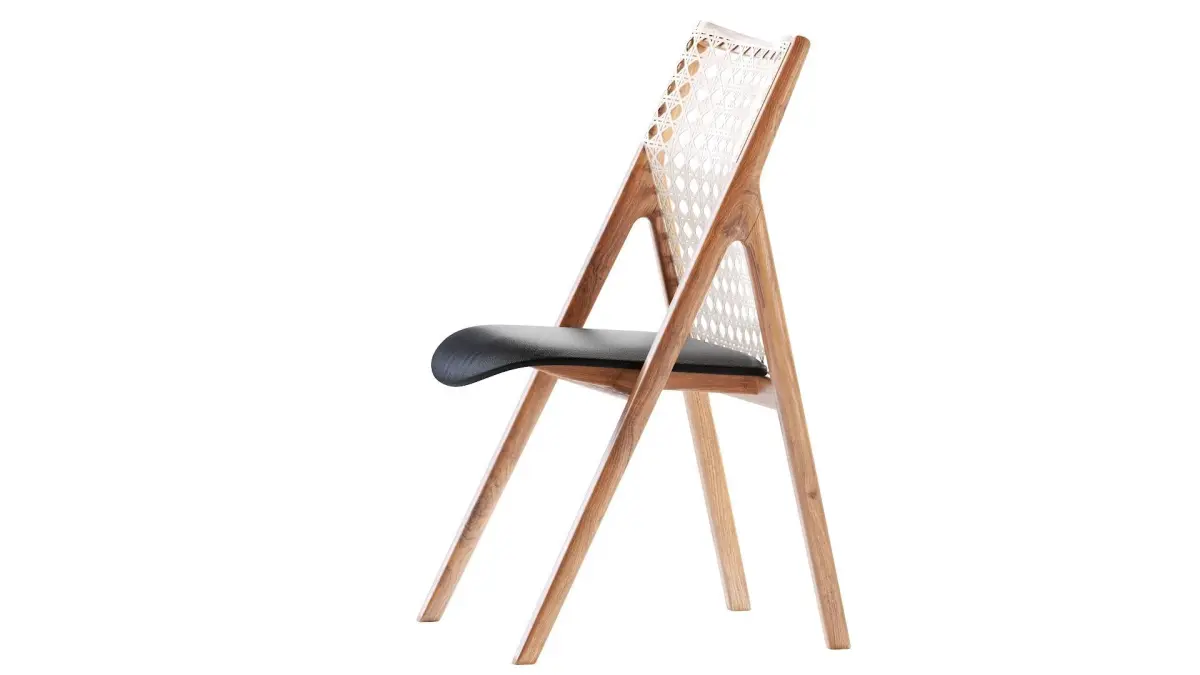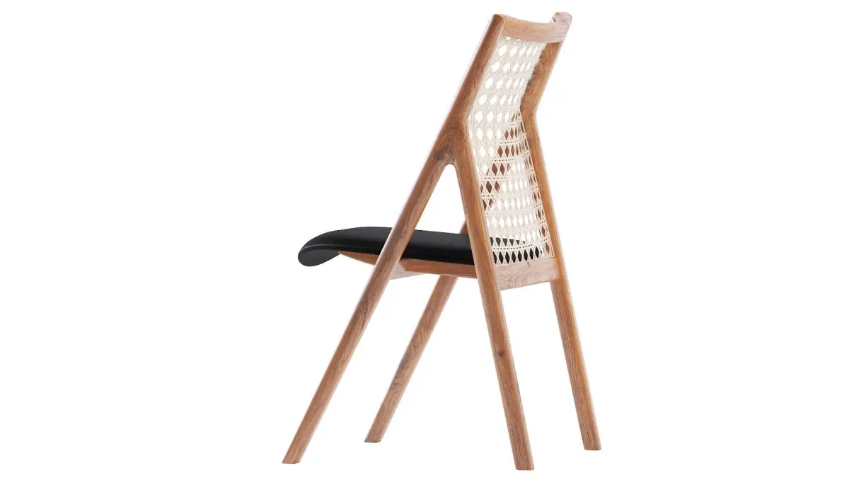 The Tela lounge chair has given rise to a new version of the dining chair. Like its initial version, the backrest weave is inspired by the classic cane woven pattern of the midcentury furniture. The plot design has been recreated in a larger scale made with cotton thread for more comfort and durability. The chair has a lower backrest and can also be used to compose with the armchair in a living room or lounge. The design seeks maximum comfort with a minimal structure, light aesthetics and a tropical flair.