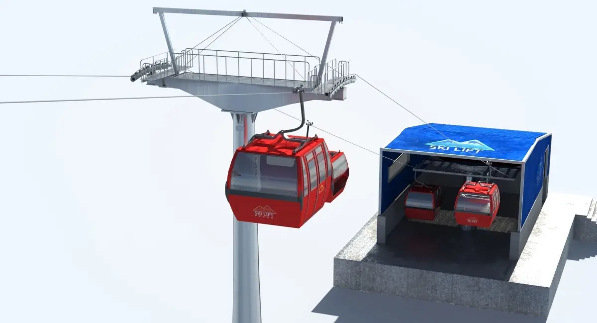 Telecabin Ski Lift Cableway- Animated and Rigged
