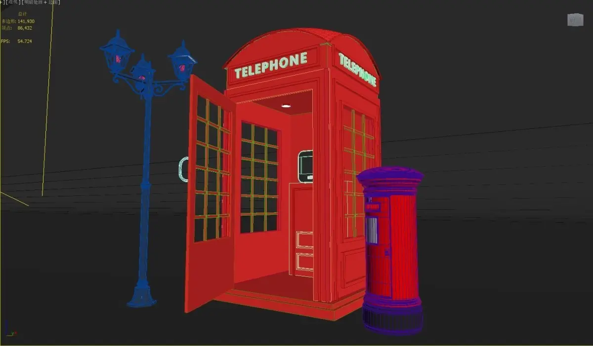Telephone booth Low-poly 3D model