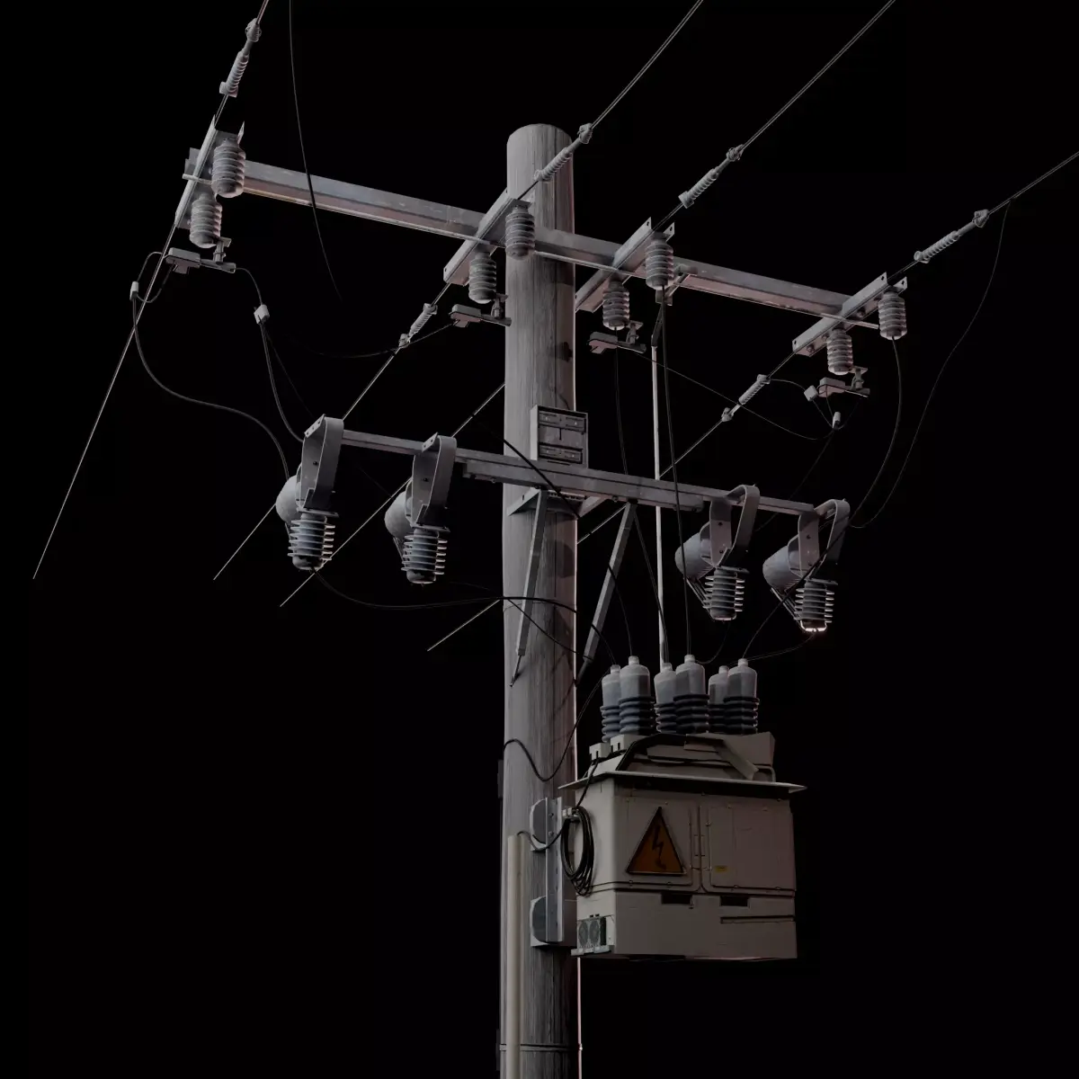 High-quality, game-ready telephone pole featuring detailed insulators, crossarms, wiring, and a fully modeled transformer box. Includes clean UVs, PBR textures, and optimized geometry for real-time or cinematic use.