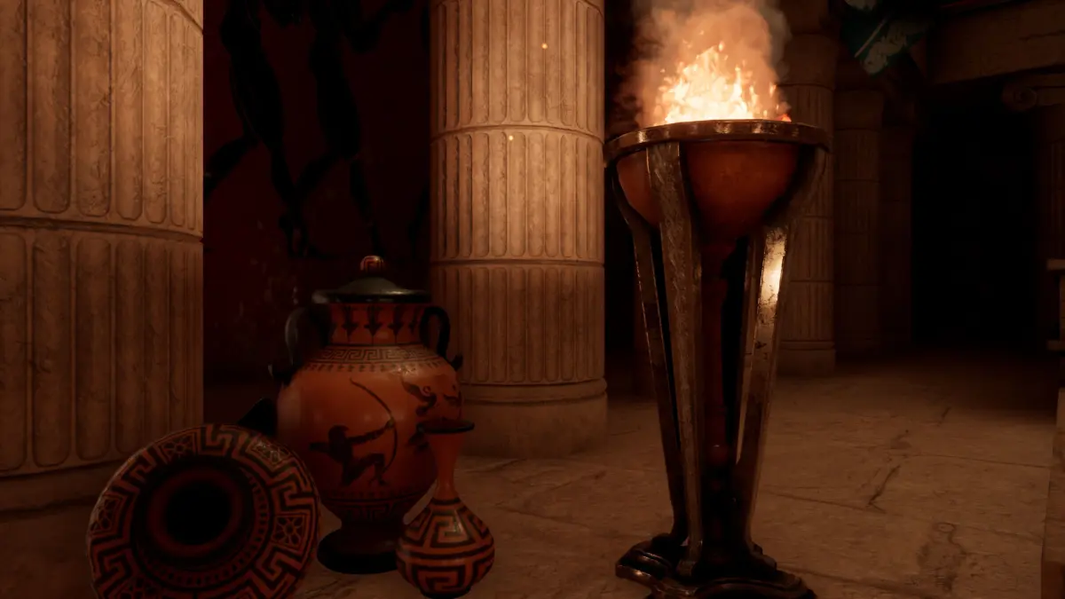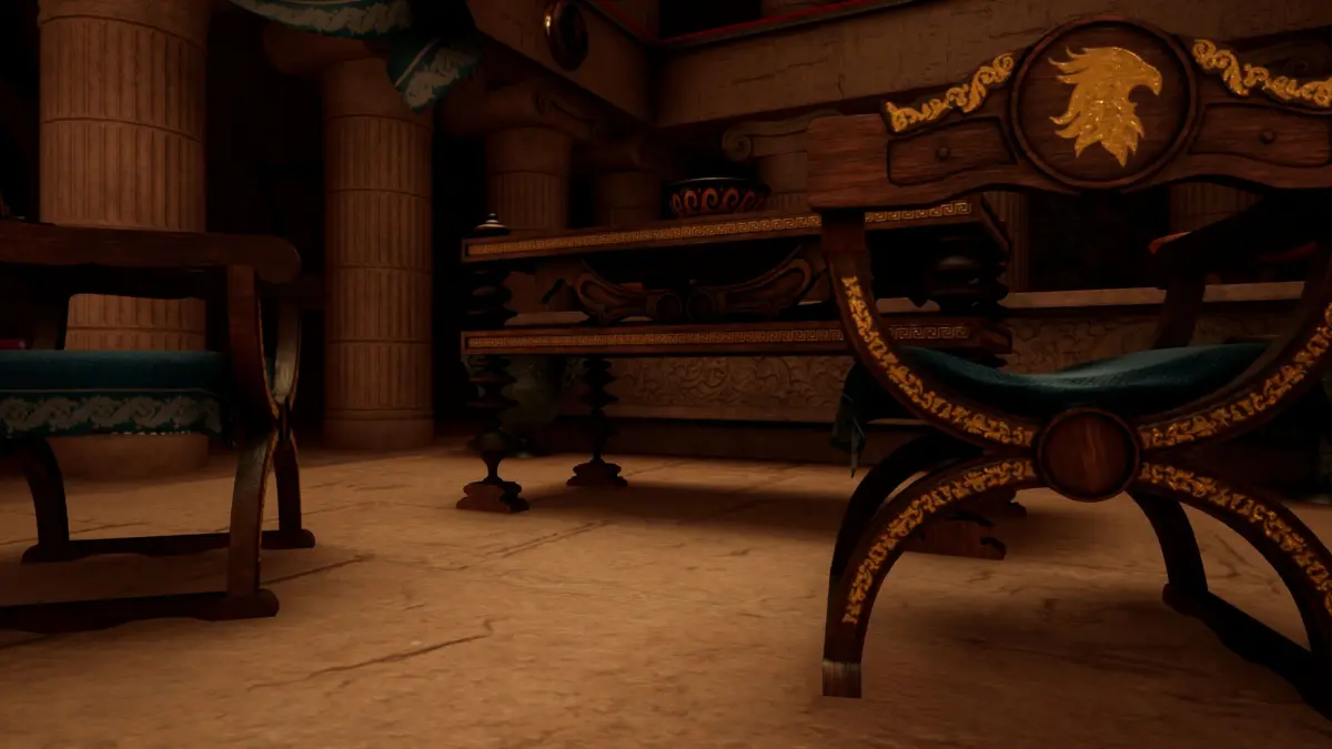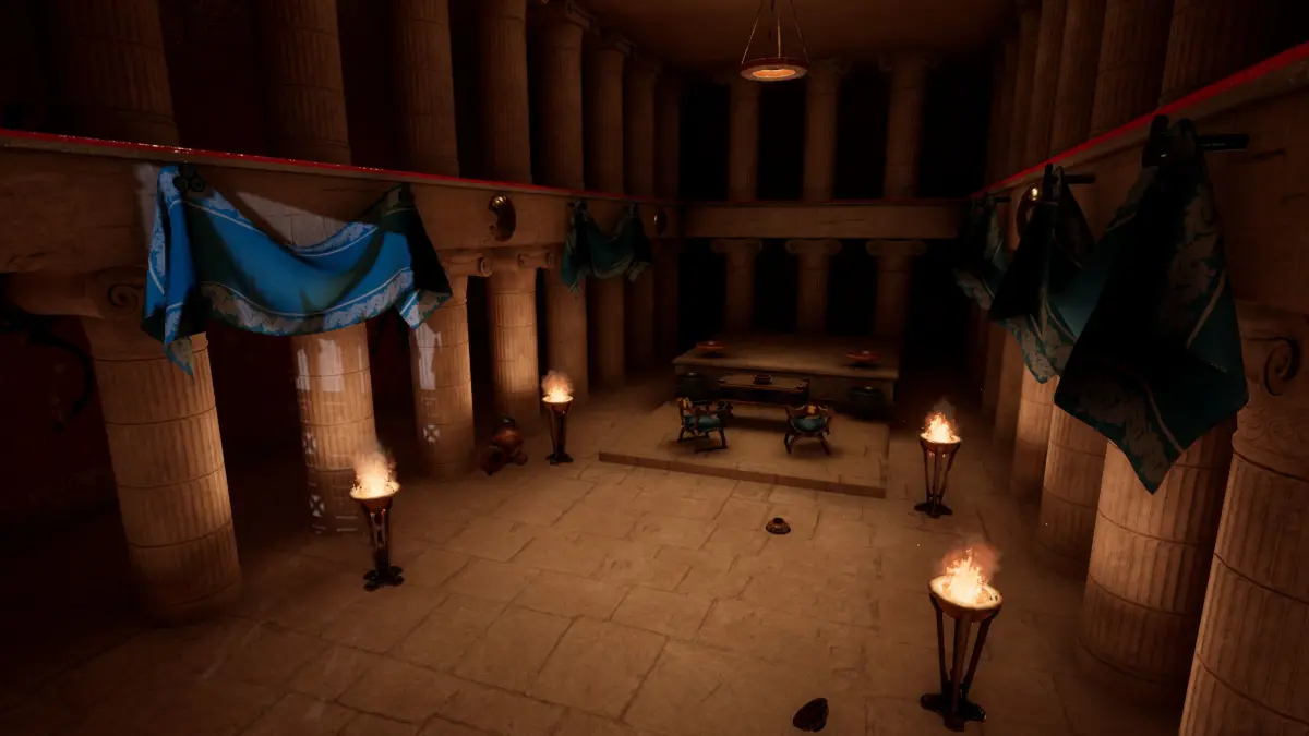 An interpretation of the ancient temple of Athena on a human scale without the sculpture of the goddess Athena, it can also be interpreted as a pantheon for rituals. Functional for VR glasses.