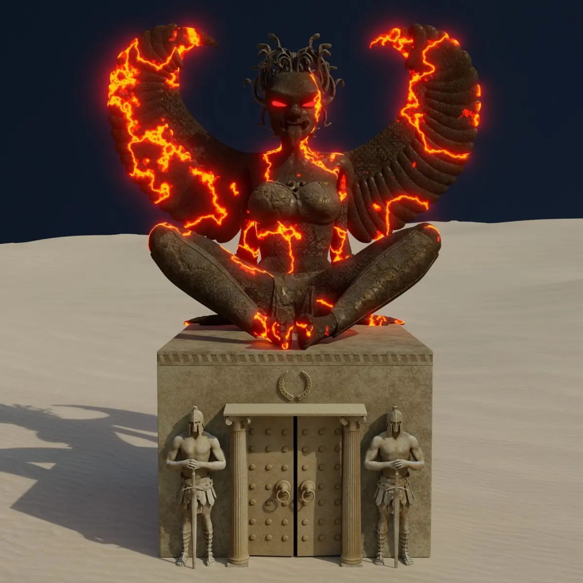 Temple of Death with statue. The cover of the famous novel by Ivan Antonovich Efremov. The Hour of the Bull Аbout the journey of the crew of the earth starship of people from the distant future: the inhabitants of the communist Earth - to the planet Tormans on the superluminal starship Dark Flame, moving in hyperspace, sent into space by the planet Earth with a humanitarian task. On the planet Tormans, the starships discover the descendants of people who previously escaped from the planet Earth, who built a society outside of Earth based on spiritual and political violen$ce.