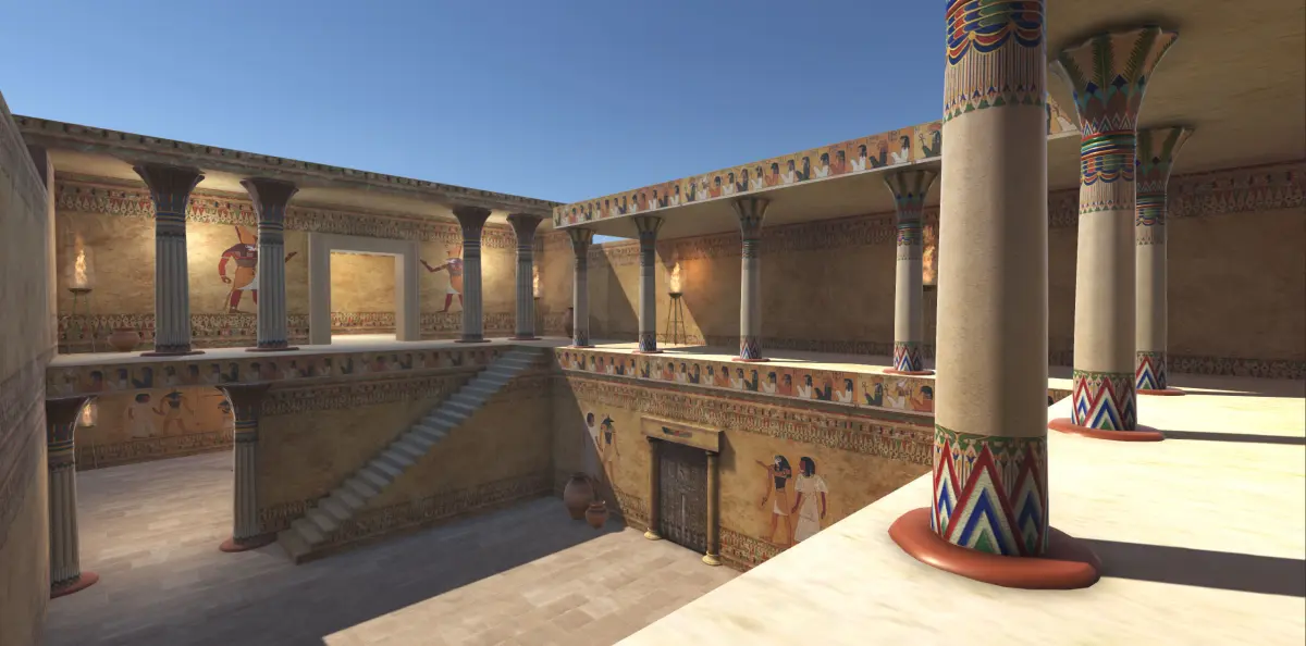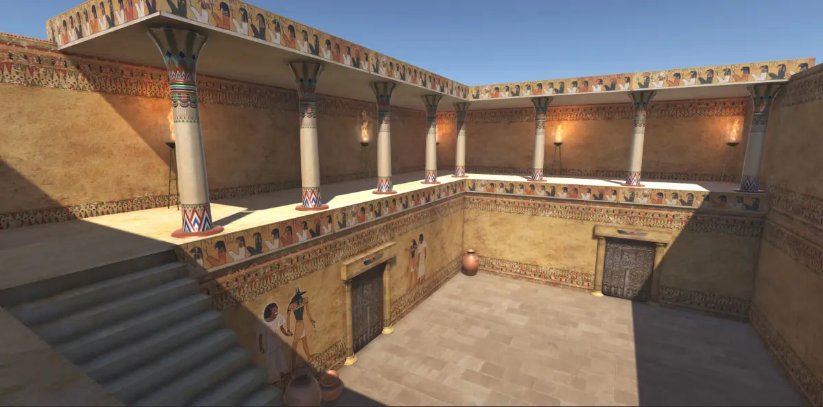 Inside of a small Egyptian fiction temple originally created for Unity. All the walls and columns which form the scenary are decorated with textures and images from the ancient Egypt. The lighting of the lamps situated along the temple creates a very appropiate and realistic atmosphere that will lead us to that time. There are also several vessels, a statue, a chest and a cat. The FBX models and textures are included separately to be used in other 3D apps. (If you are not using Unity, you will have to assemble the scene in the program you are using for it). All the models are low-poly to be used in games and applications. A version created and configured in unity for VR Oculus Quest 2 is included.