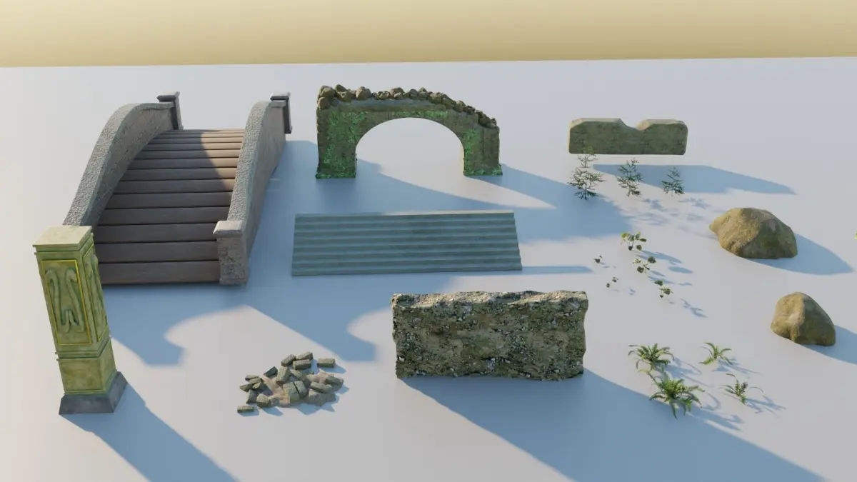 Includes 20+ assets with textures.Made in Blender, the images were rendered in Cycles.
