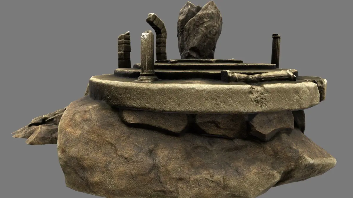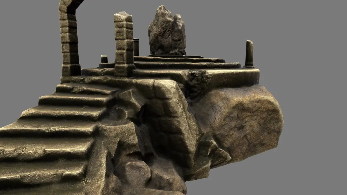 temple stone structure with stairs leading up to it Low-poly 3D model