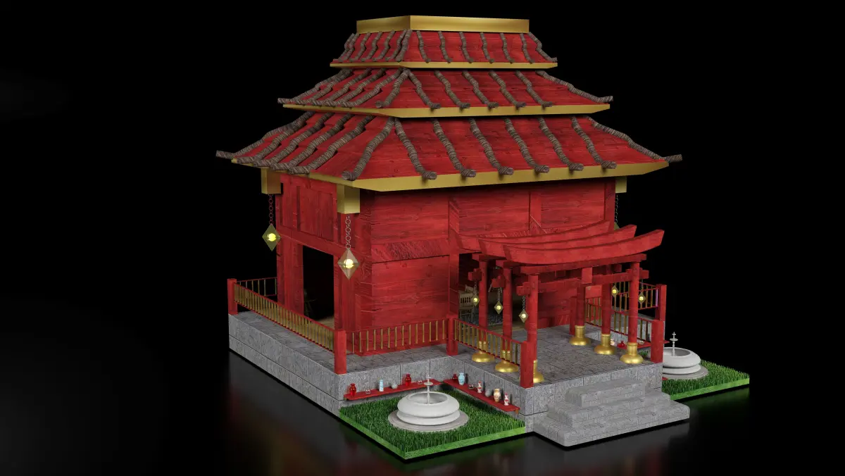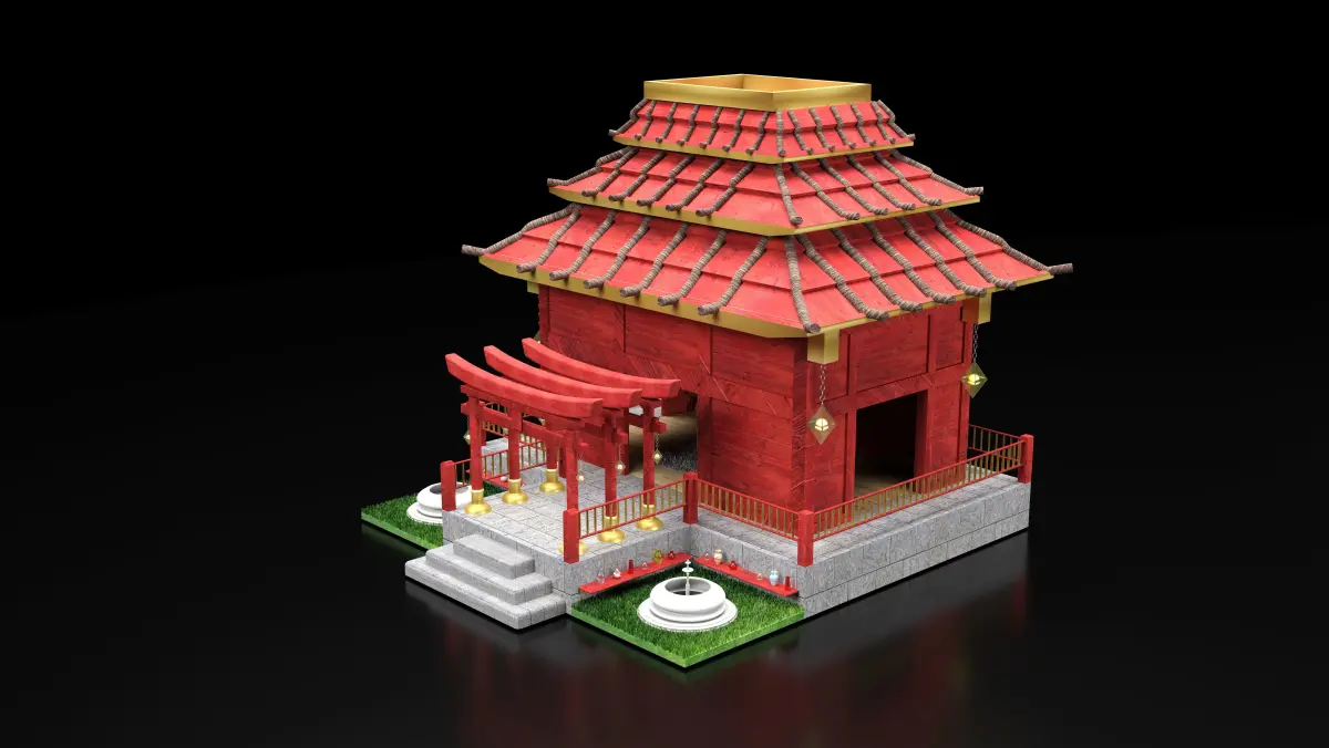 Modelado estilo japonés que destaca toda la caracterización del medio oriental, con la infraestructura arquitectónica.