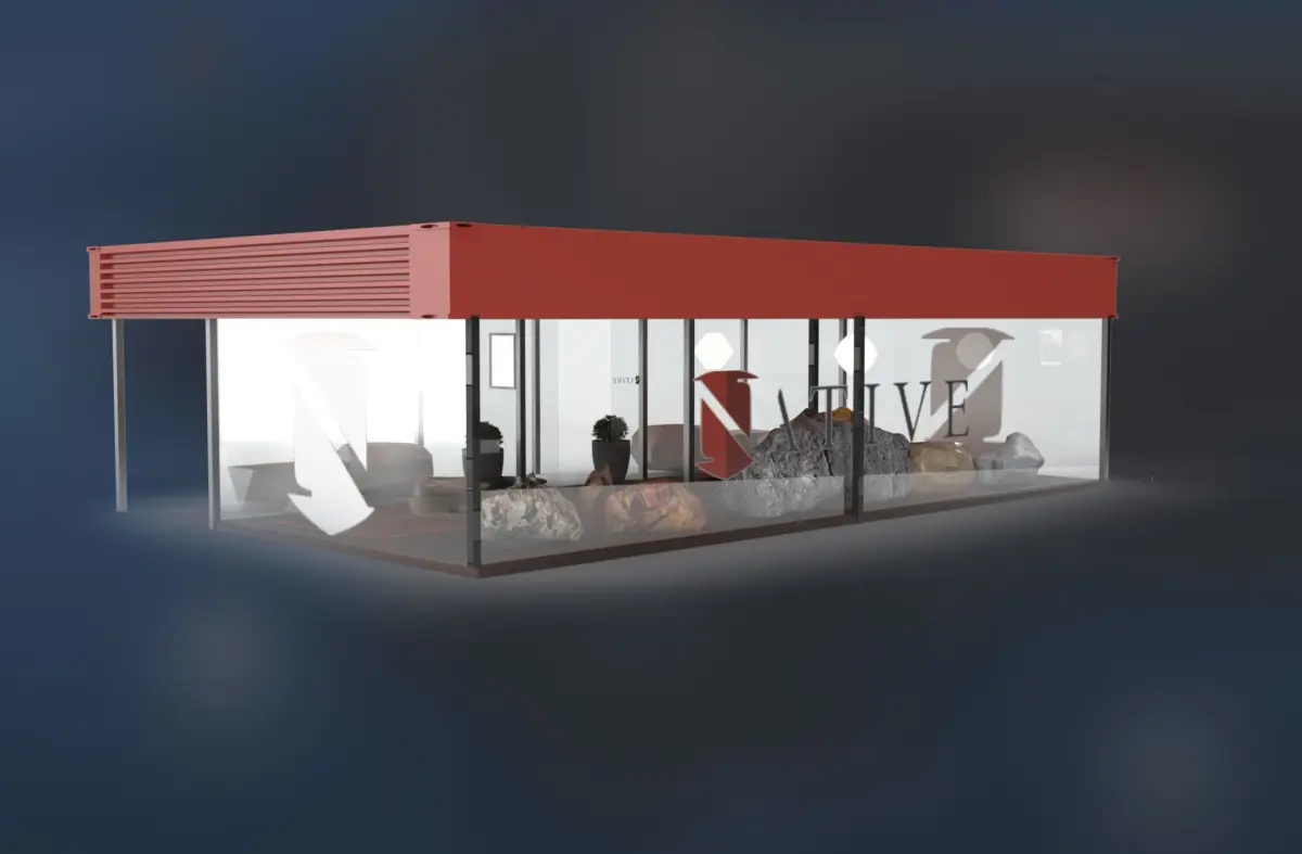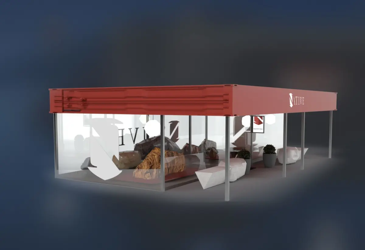 Temporary Store - Industrial Style w// stone, iron and container shape.