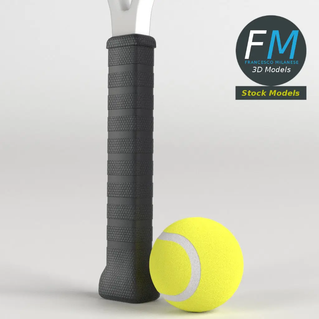 Tennis ball and racket set 3D Model. Production-ready 3D Model, with PBR materials, textures, non overlapping UV Layout map provided in the package.