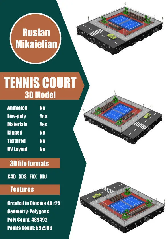 This is a great Tennis Court Low Poly 3D model for you projects.