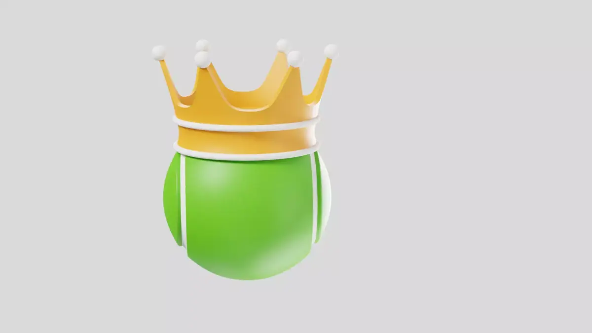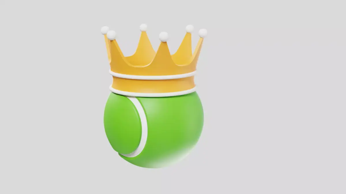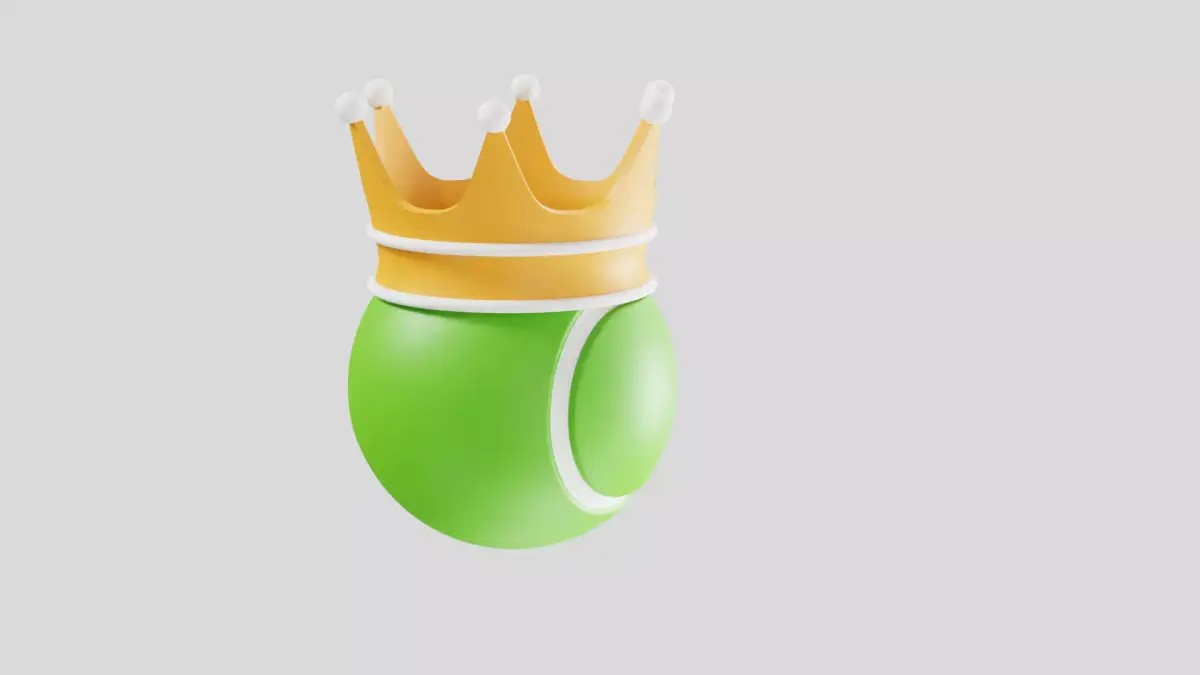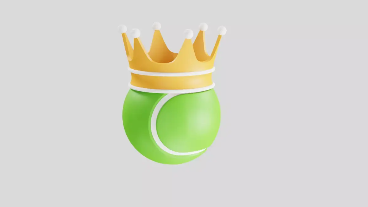 Creative 3D tennis ball with crown icon symbolizing champion, winner, and tennis excellence.