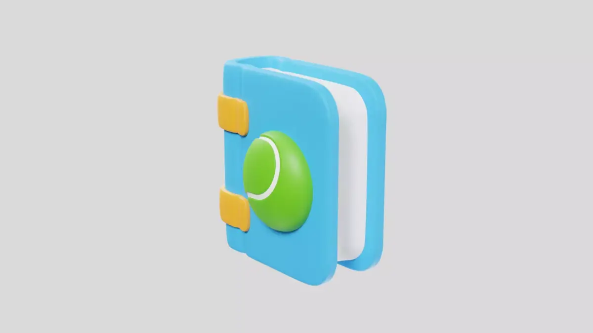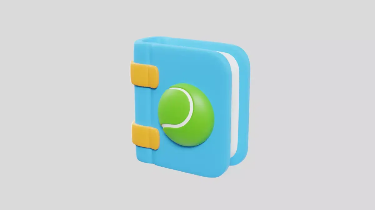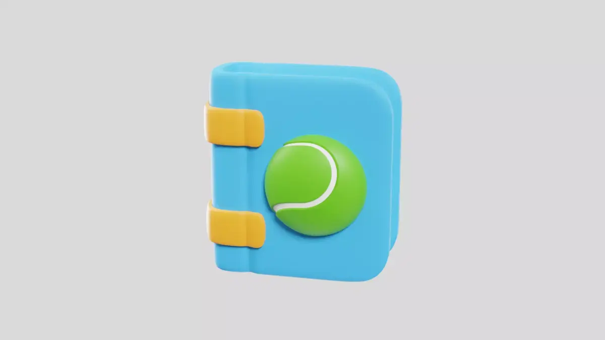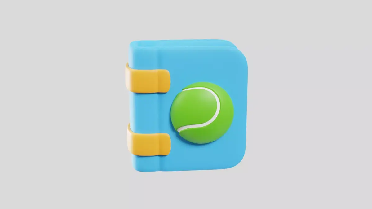 Unique 3D tennis notebook icon for match notes, coaching plans, and sports organization visuals.
