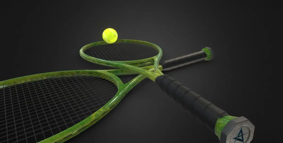 Instrument made up of a handle and an oval surface, usually a frame with a network of tensioned strings, used to hit the ball or the shuttlecock in games such as tennis, badminton, table tennis, etc.