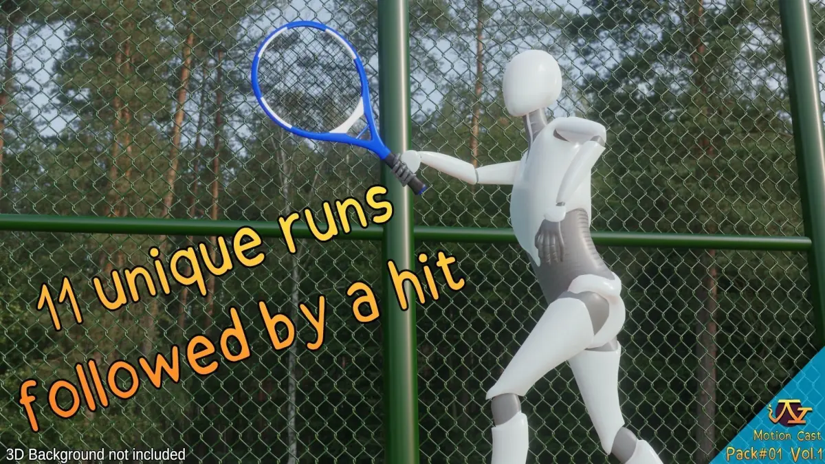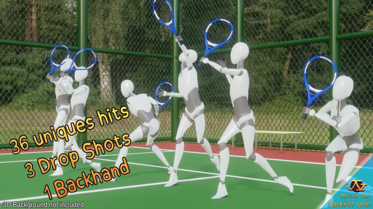 This pack contain :-arrival animation of the player-idle-warm-up animation-9 runs animations-3 services -36 hits, at different speeds + 3 Drop Shots and 1 Backhand-11 runs followed by a hit-6 animations after winning (match or a point ...)-4 animations after losing-7 interactions between teammates-6 ball girl animations-2 line judge animationsA total of 100 animations in FBX files.A total of 100 animations inside 93.C4D files.