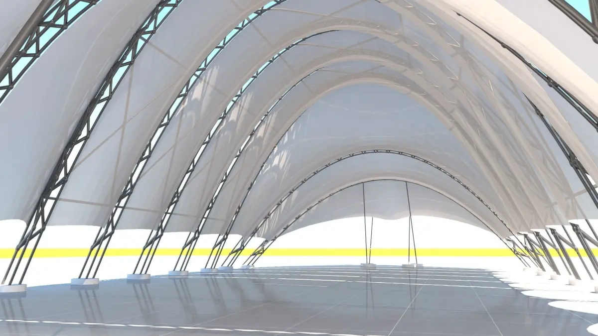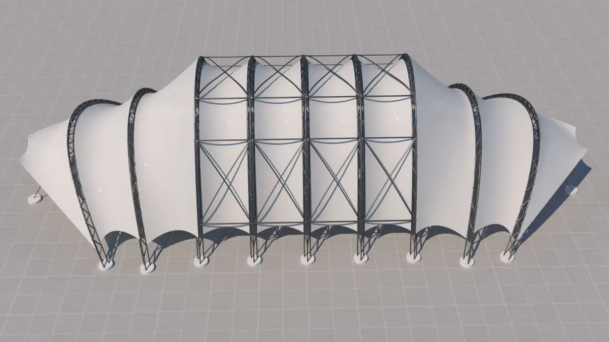 This model is a Tensile structure with exterior and interior design as open space, It can be also a car showroom, shopping center, or any commercial service.