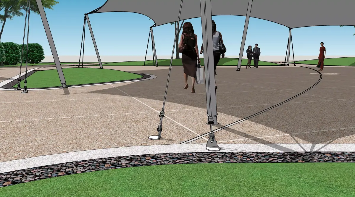 Tensile structure canopy models, incorporating elastic minimal surface membranes, poles, columns, cables, and foundations, represent a cutting-edge approach to modern architectural and landscape design. These lightweight yet highly durable structures are engineered to provide shading, aesthetic enhancement, and functional outdoor spaces, making them ideal for a variety of applications, including: